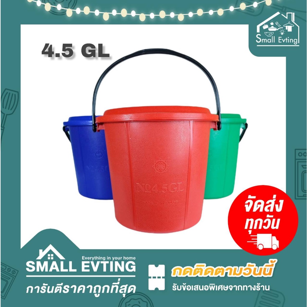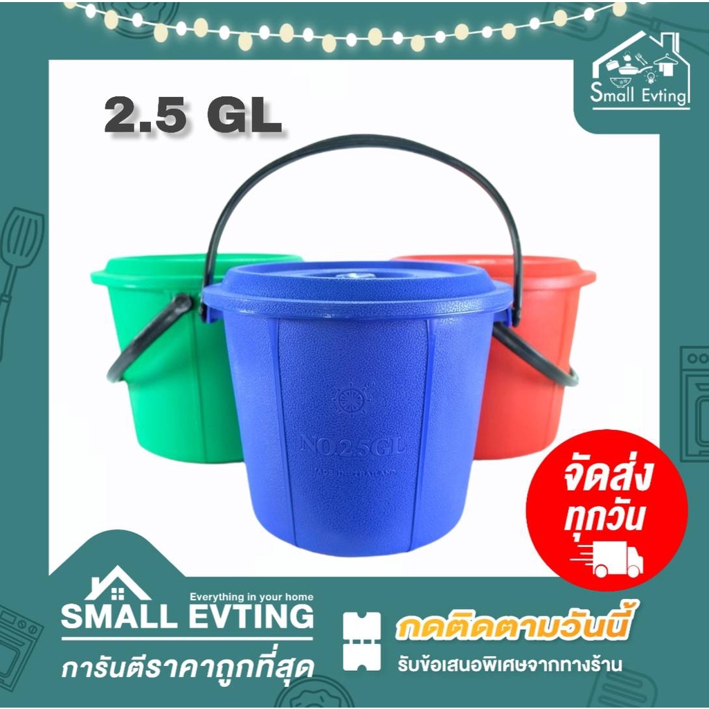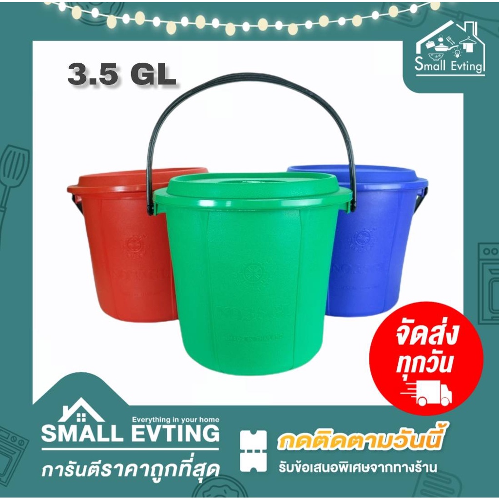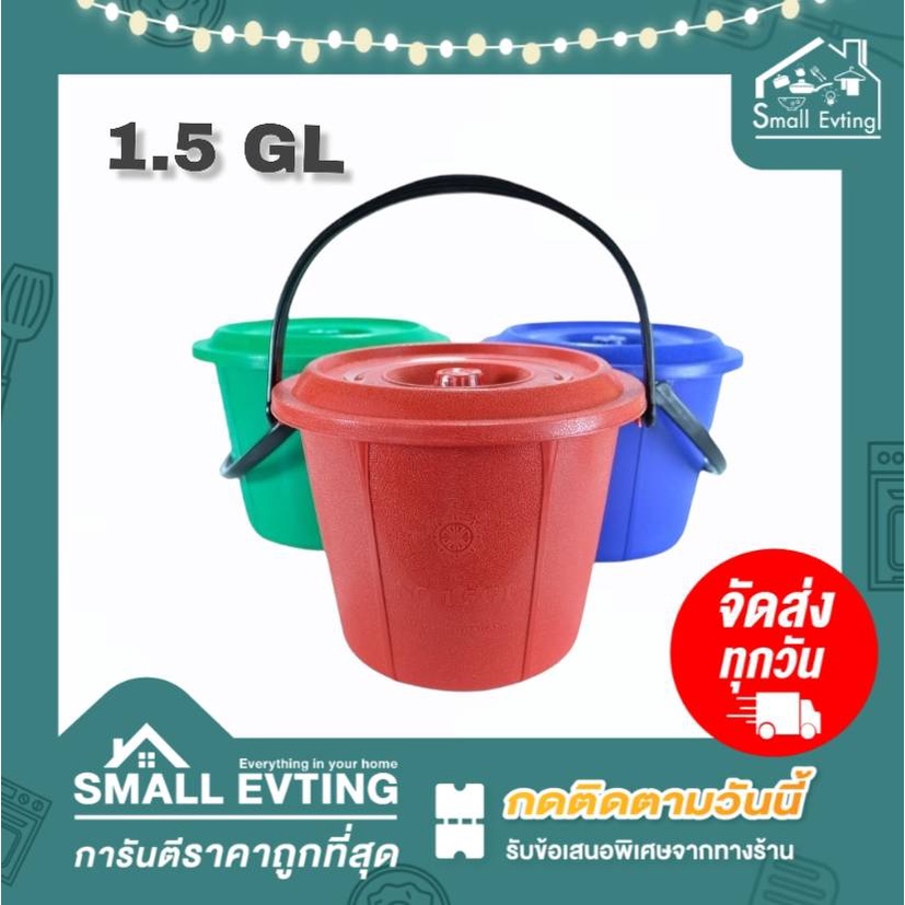 Small Evting ถังน้ำ พร้อมฝา มีหูหิ้ว แบบหนา 3 สี ขนาด 1.5 - 4.5 GL ถังใส่น้ำ 🇹🇭 Made in Thailand