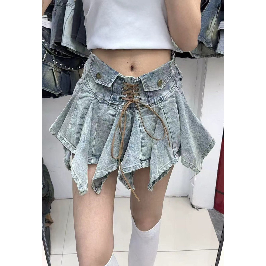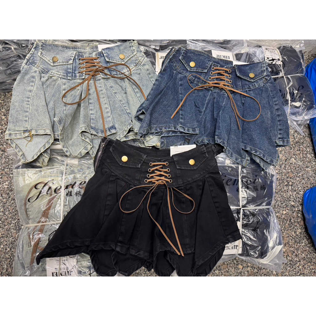 กระโปรงผ้ายืด เชือกถักด้านหน้า
