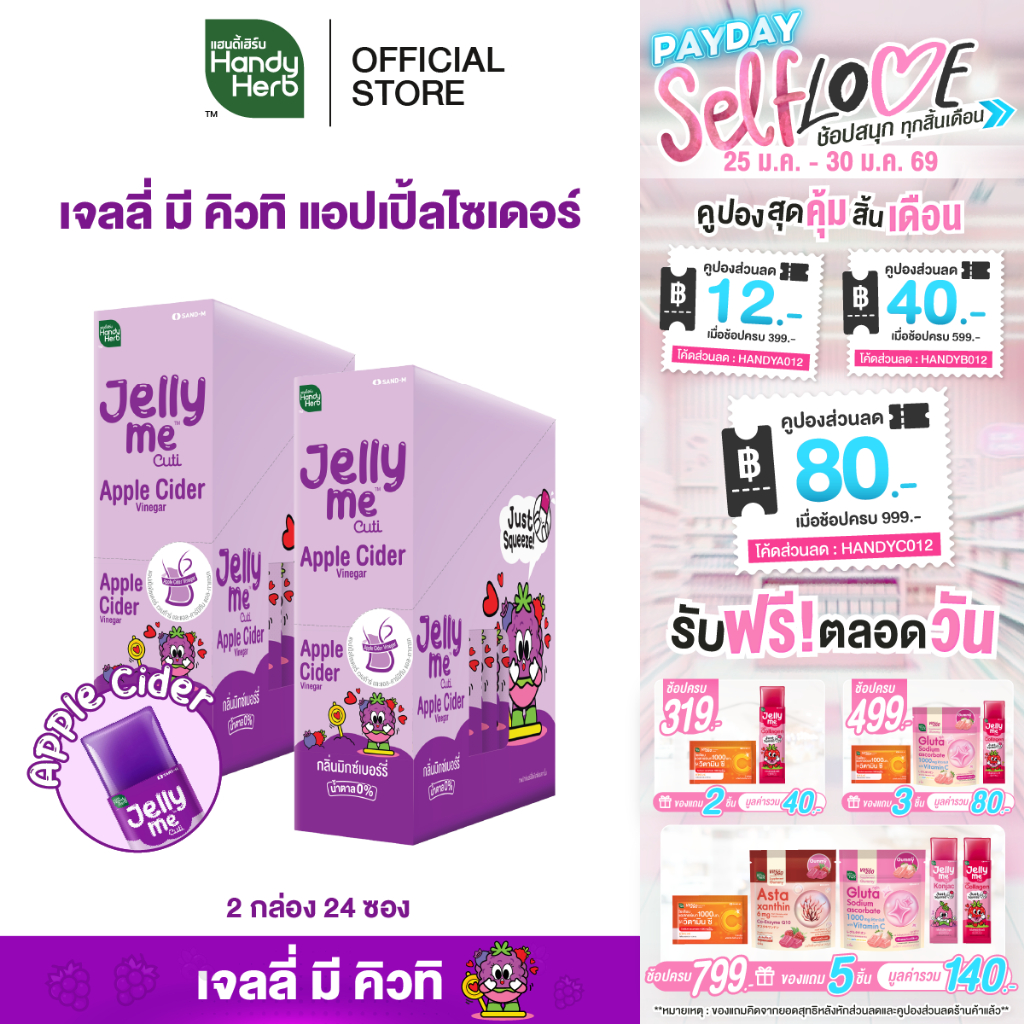 HandyHerb Jelly Me Cuti Apple Cider เจลลี่ มี คิวทิ แอปเปิ้ลไซเดอร์ กลิ่นมิกซ์เบอร์รี่ 2 กล่อง (24 ซอง)