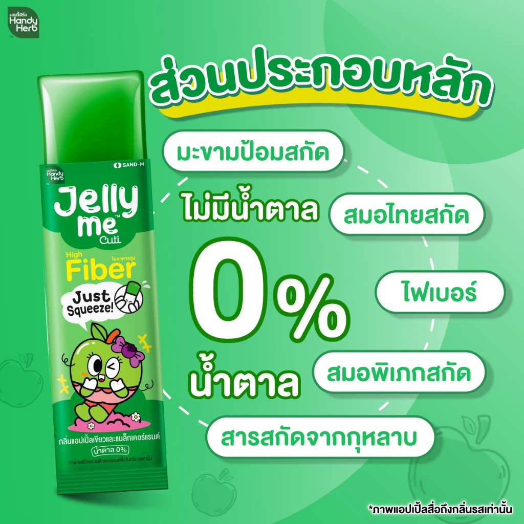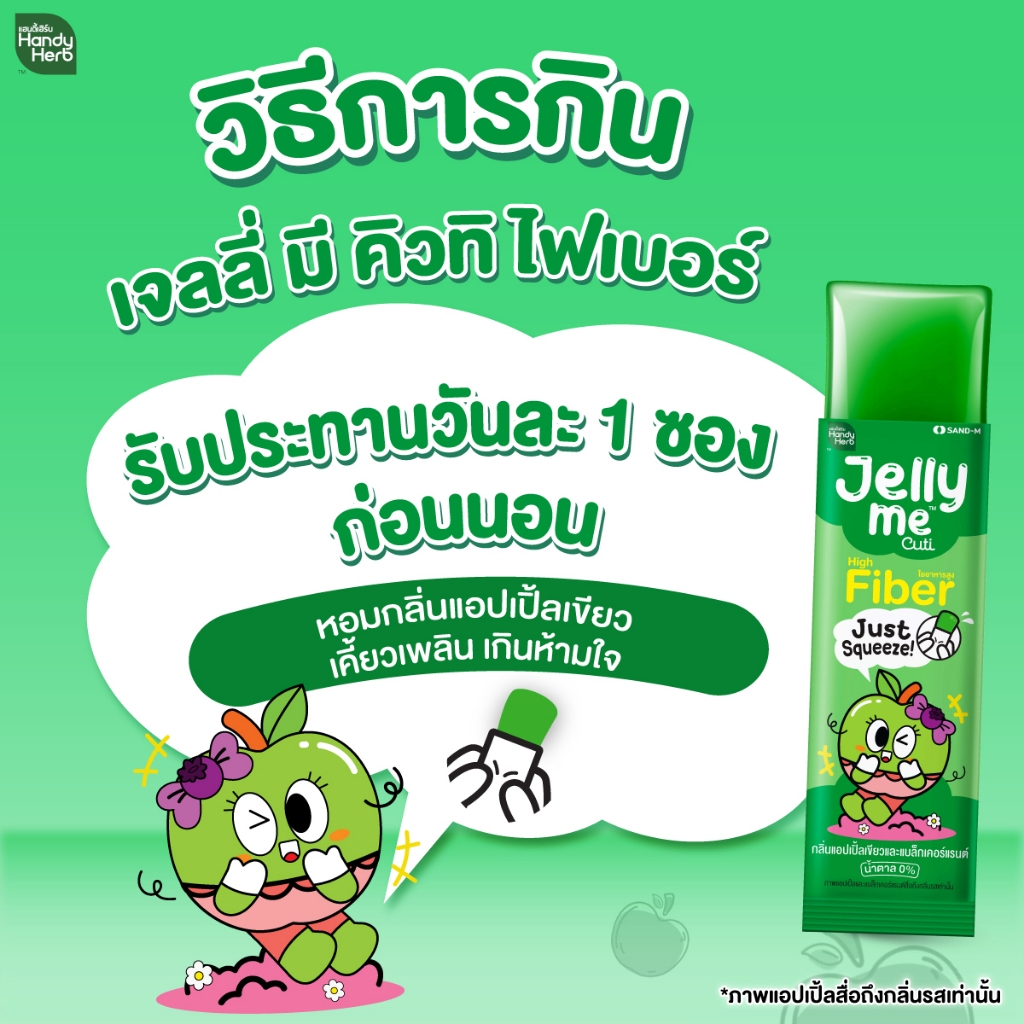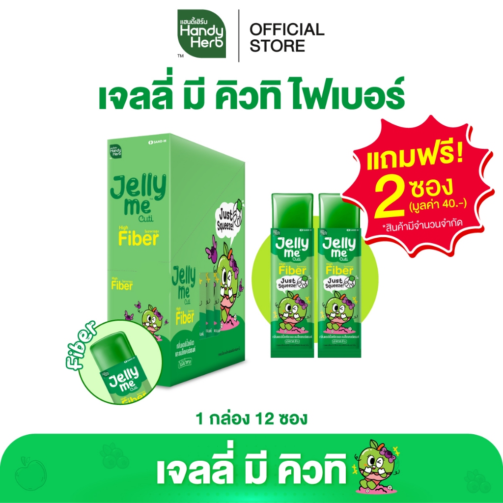 ฟรี! 2 ซอง [ฉลากเก่า] HandyHerb Jelly Me Cuti Fiber ไฟเบอร์ กลิ่นแอปเปิ้ลเขียว และแบล็กเคอร์แรนต์ 1 กล่อง (12 ซอง)