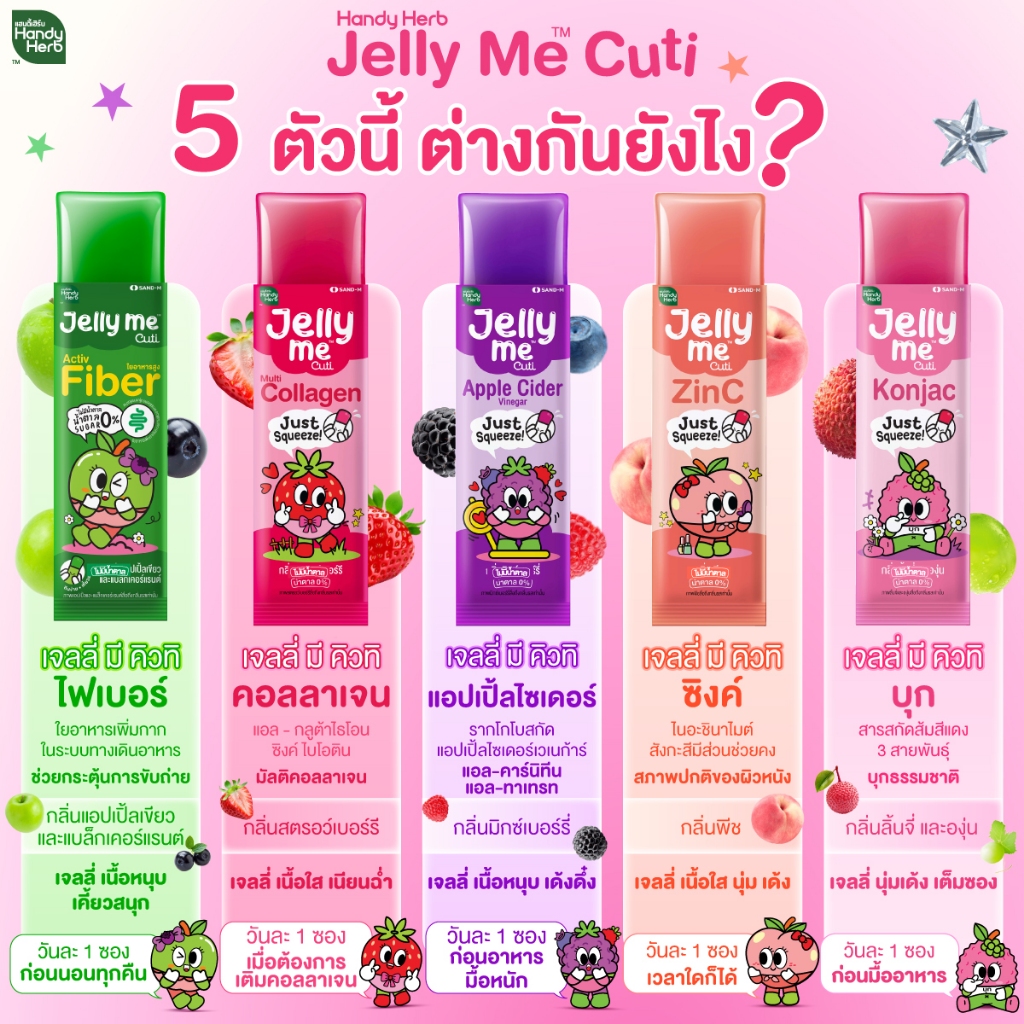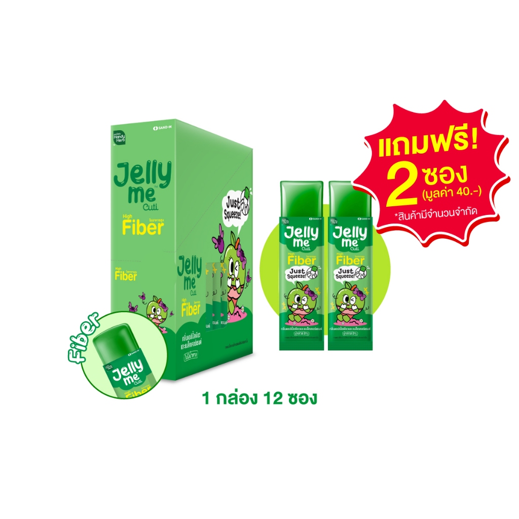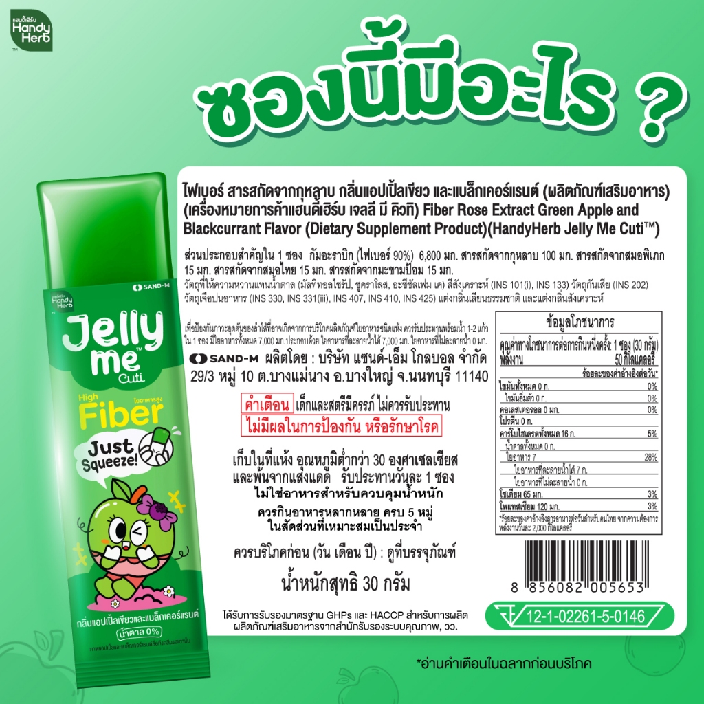 ฟรี! 2 ซอง [ฉลากเก่า] HandyHerb Jelly Me Cuti Fiber ไฟเบอร์ กลิ่นแอปเปิ้ลเขียว และแบล็กเคอร์แรนต์ 1 กล่อง (12 ซอง)