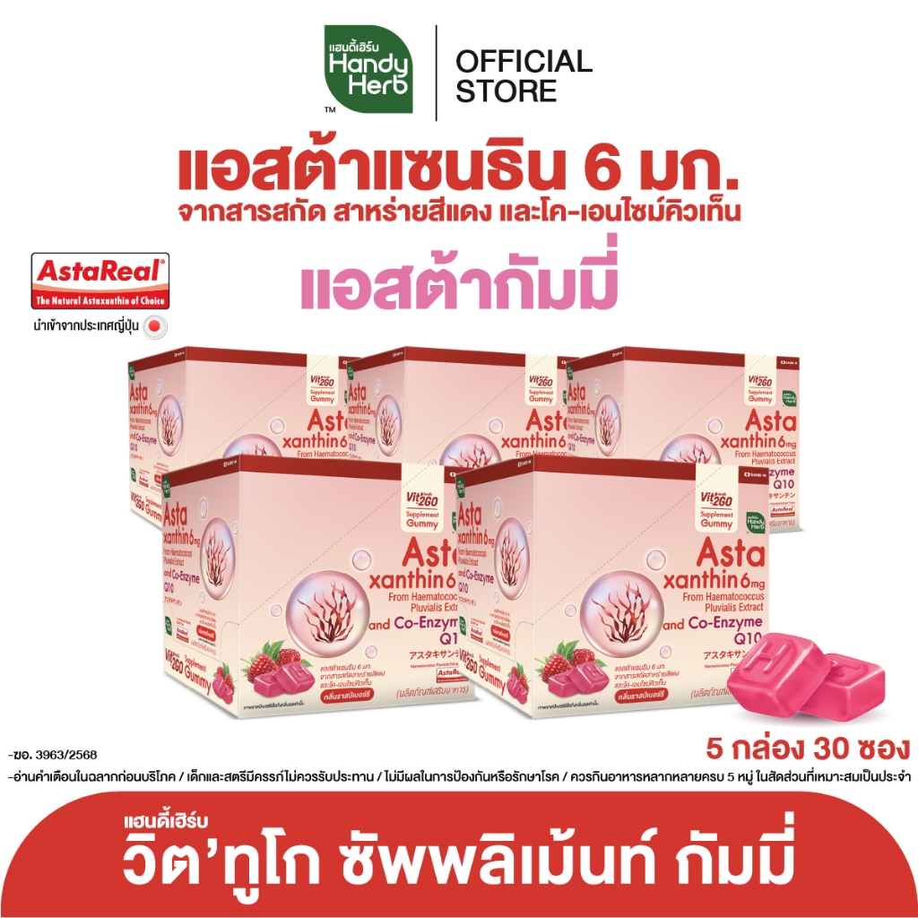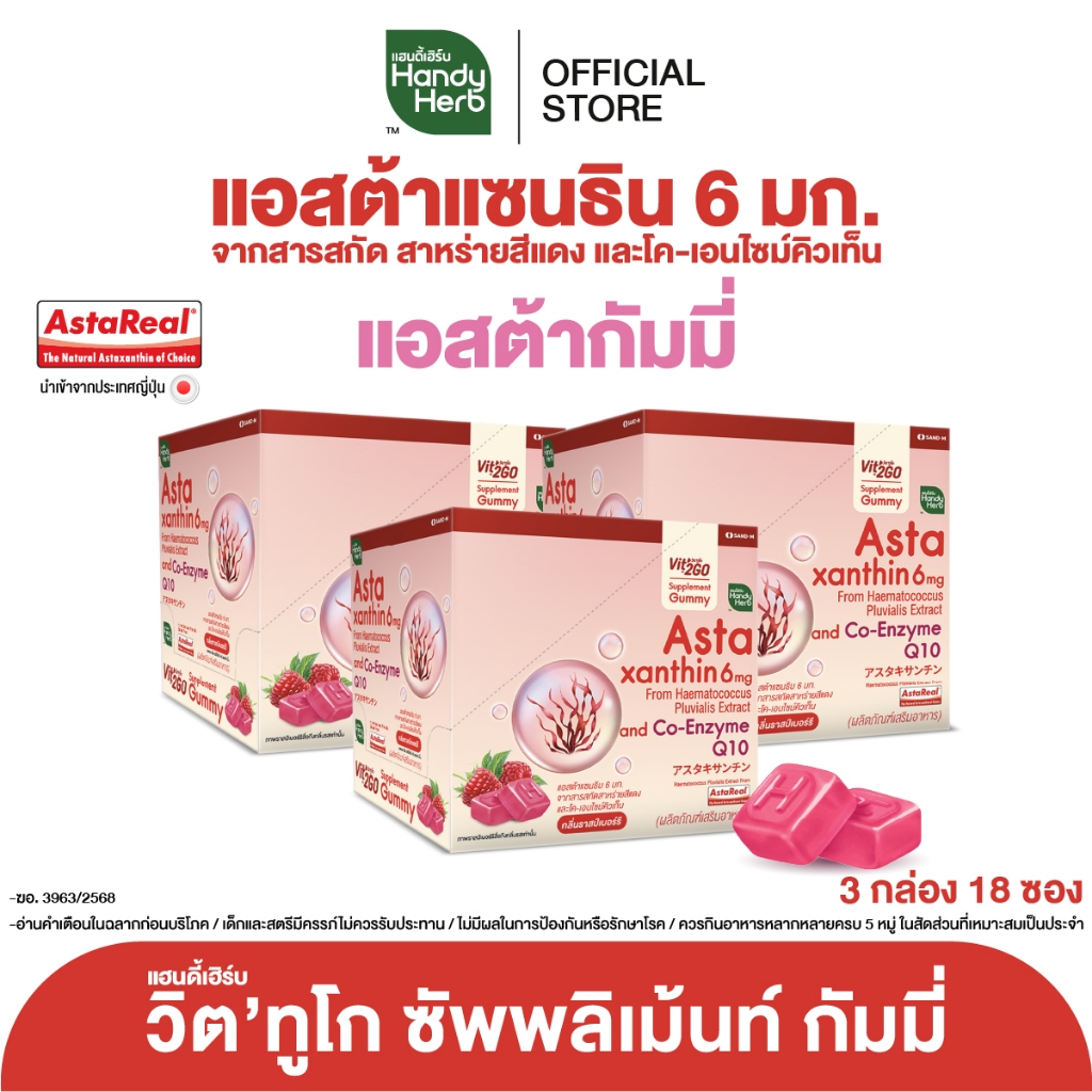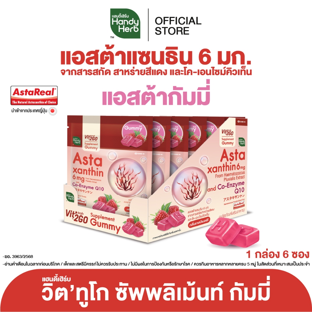 HandyHerb Vit’2Go Gummy แอสต้าแซนธิน 6 มก. เเละโค-เอ็นไซม์ คิวเท็น กลิ่นราสป์เบอร์รี