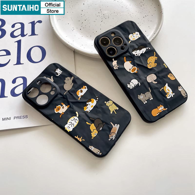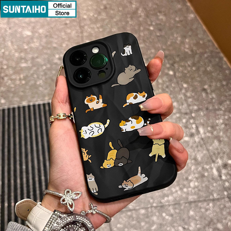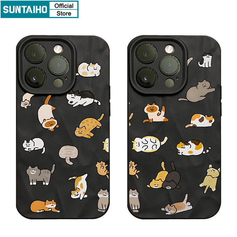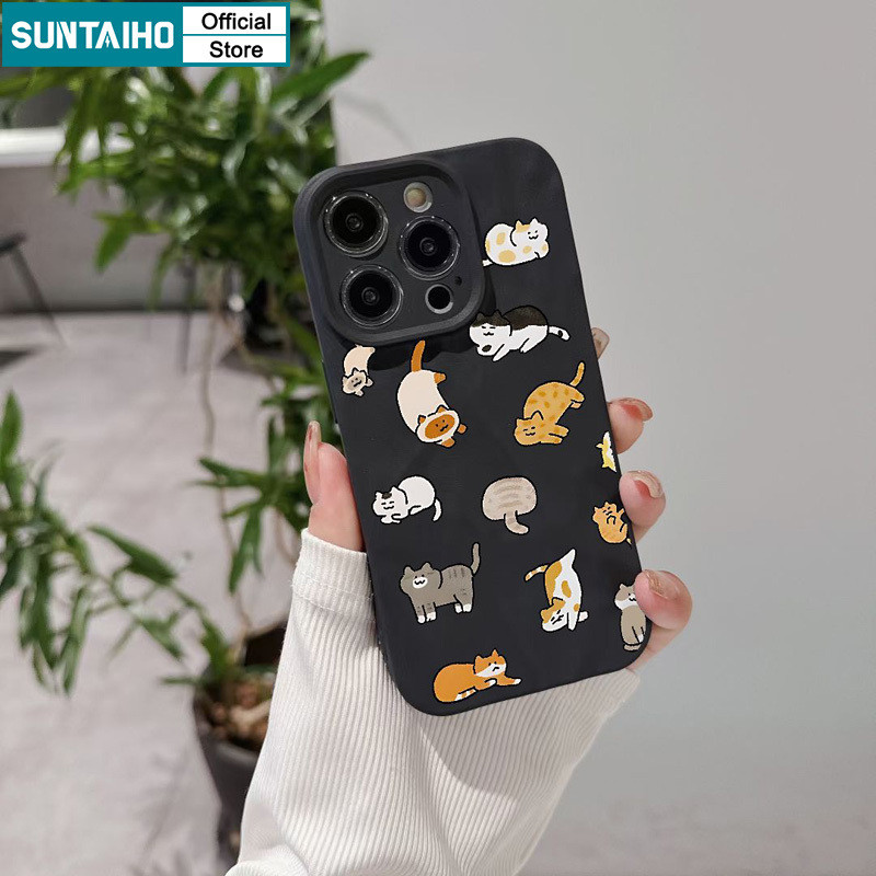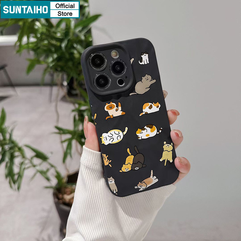 Suntaiho เคสไอโฟน ตลกน่ารักปลอกการ์ตูนแมวรูปแบบเคสโทรศัพท์สําหรับ Iphone 15 14 12 13 11 Pro Max IP 7 8 Plus Iphon X Xs XR Xs Max ซิลิโคนนุ่มพรีเมี่ยมกันกระแทกปกหลัง
