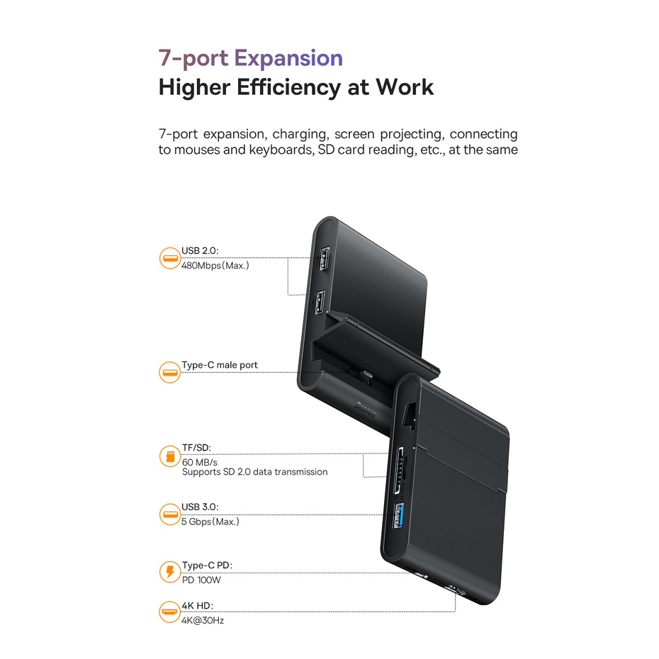 Baseus USB Type C Docking Station ถึง 4K HDMI เข้ากันได้กับ SD/TF USB 3.0 PD 100W Fast Charging สําหรับ Samsung S22 Dock Station Dex HUB