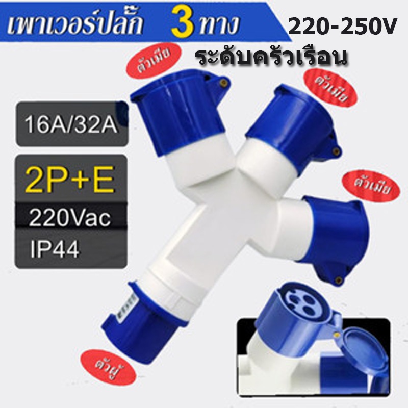 🌈🌈3ทางเพาเวอร์ปลั๊ก กันน้ำ IP44 16A 220-250V 3ขา ปลั๊กอุตสาหกรรม ปลั๊ก (ตัวผู้ + ตัวเมีย )