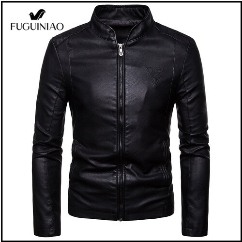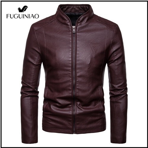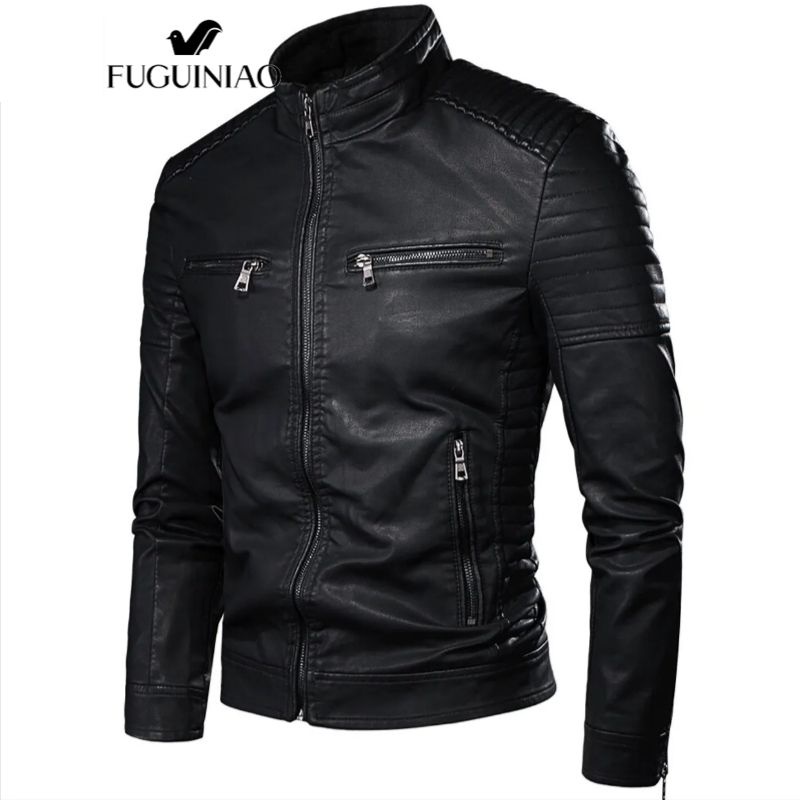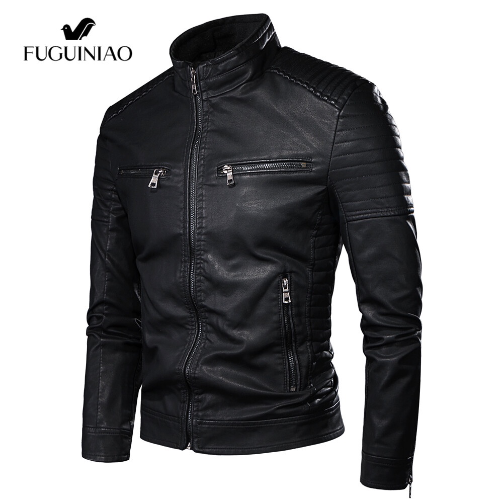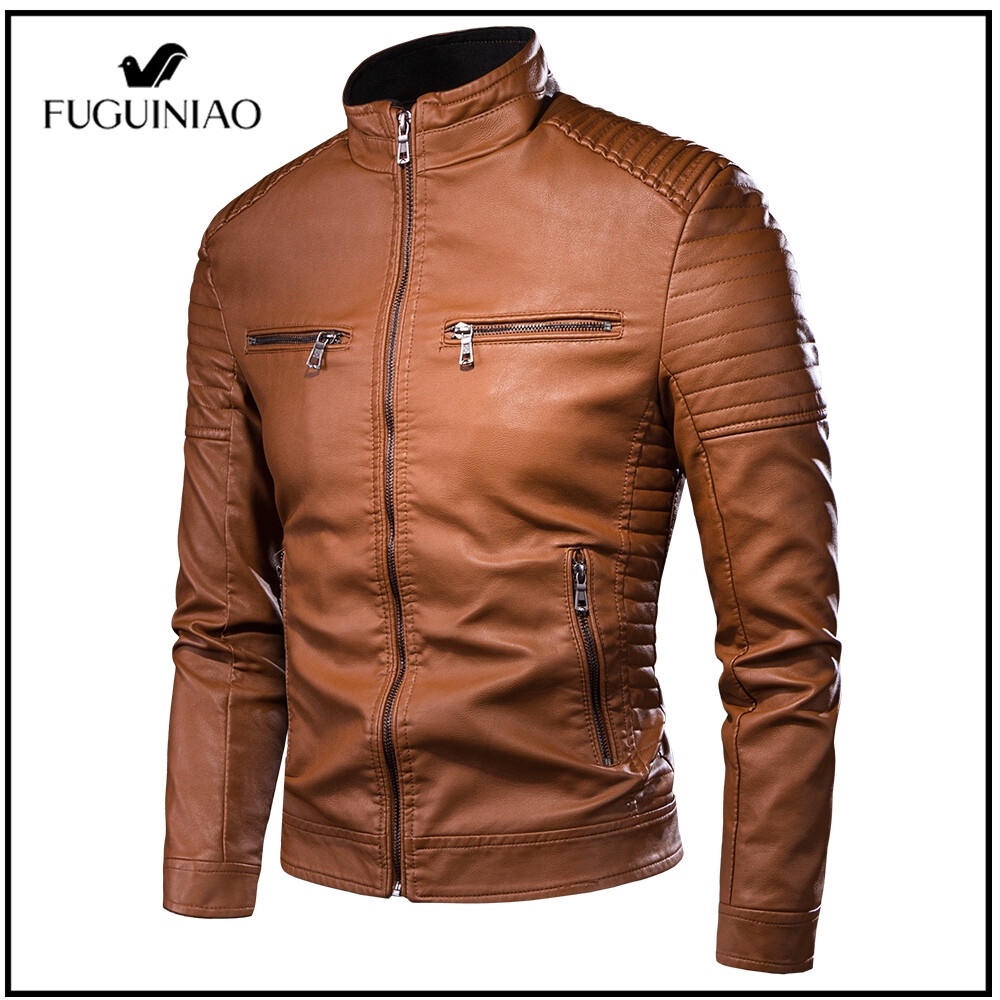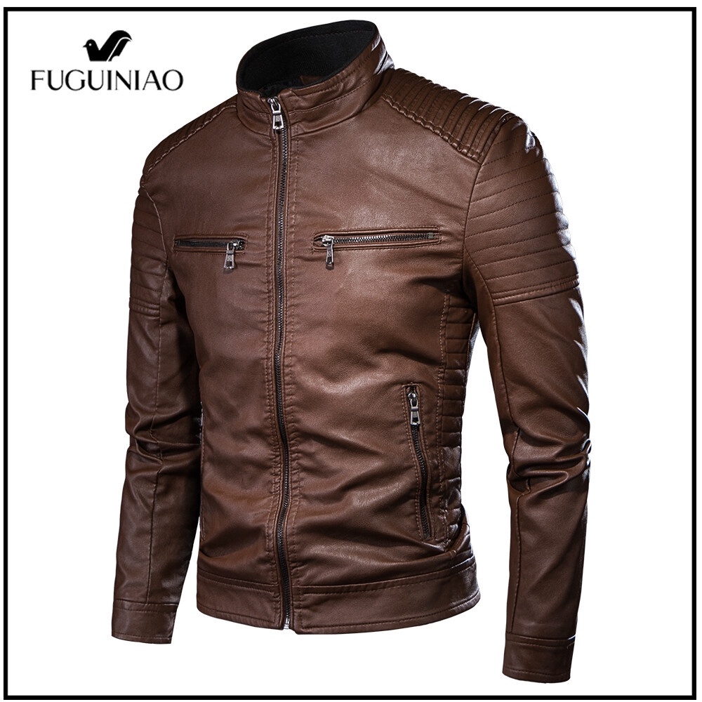 Fuguiniao ใหม่ เสื้อแจ็กเก็ตหนัง คอปกตั้ง สีดํา สีน้ําตาล แฟชั่นฤดูใบไม้ร่วง สําหรับผู้ชาย ไซซ์ M-4XL 4XL 2022