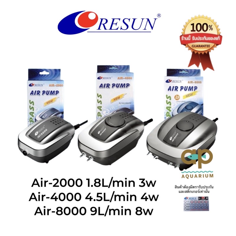 ปั๊มลม RESUN Air-2000 Air-4000 Air-8000 ปั๊มลมเสียงรับประกันศูนย์รีซันไทยแลนด์ มี RS สีทองสติ๊กเกอร์รับประกัน