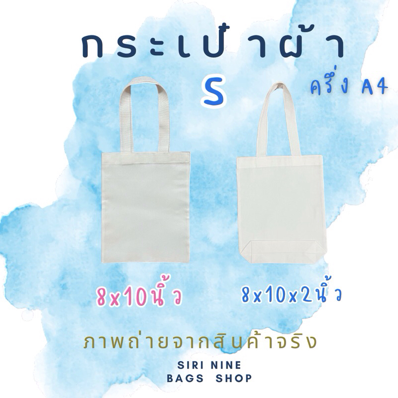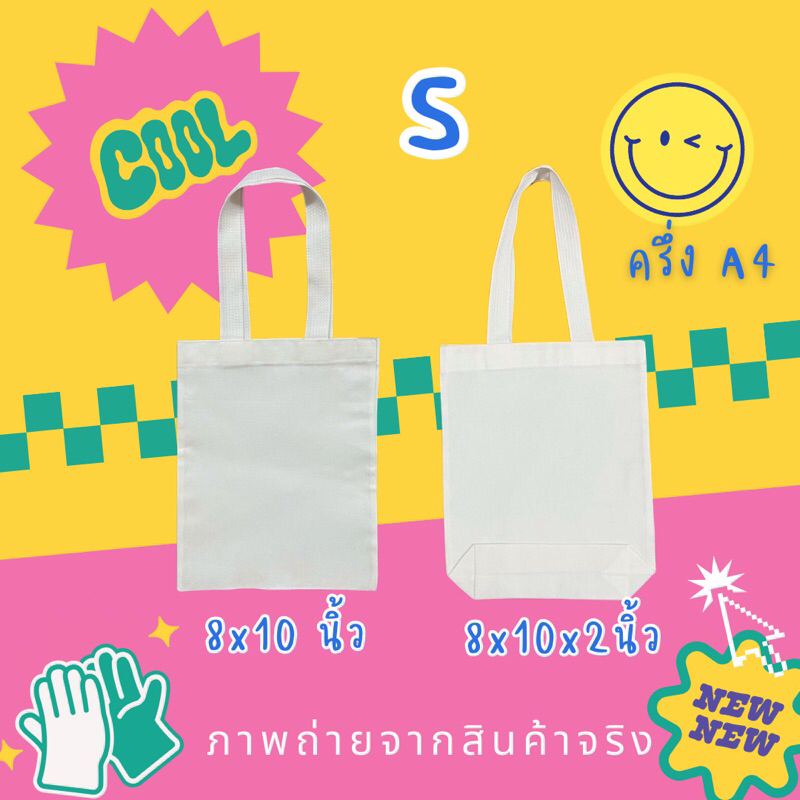 กระเป๋าผ้า ถุงผ้าเปล่า สีขาว ไซส์S ขนาด8x10นิ้ว