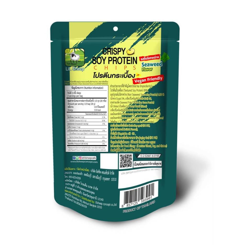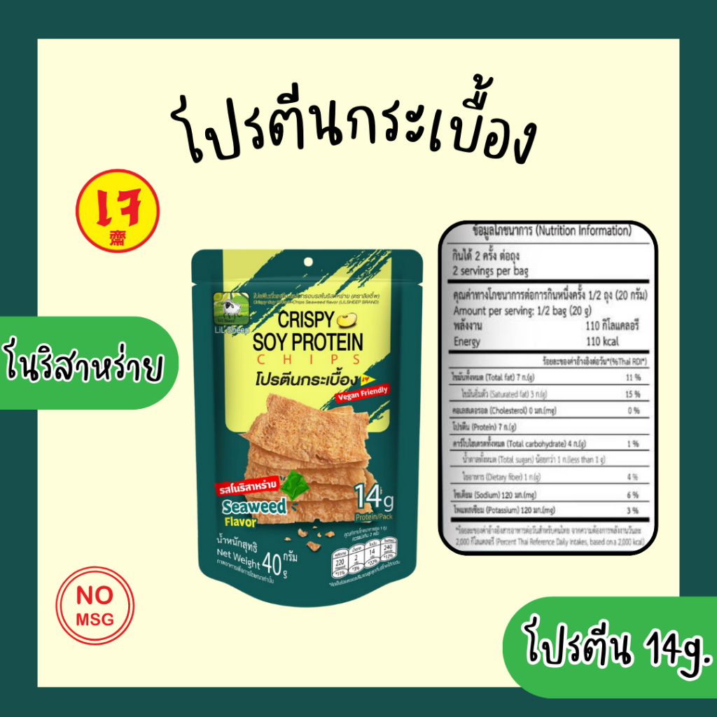 Lilsheep(ลิลชี้พ) โปรตีนกระเบื้องรสโนริสาหร่าย (เจ) กรอบ หอม อร่อย มี โปรตีน
