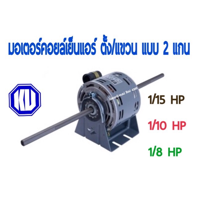 มอเตอร์คอยเย็น 2 แกน สำหรับแอร์ ตั้ง/แขวน กุลธร Kulthorn 1/15, 1/10, 1/8 HP มอเตอร์คอยล์เย็น มอเตอร์แอร์พร้อมโอเวอร์โหลด