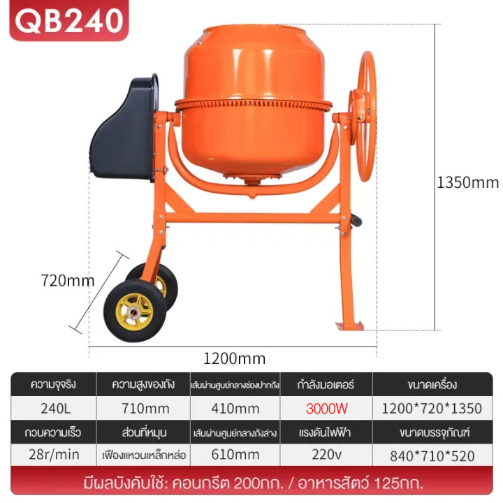 โม่ผสมปูนมินิ เครื่องผสมปูน ผสมปูนฉาบ 240 ลิตร เครื่องผสมปูนซิเมนต์ขนาดเล็กพร้อมถังผสมคอนกรีตใช้ในครัวเรือนในเชิงพาณิชย์
