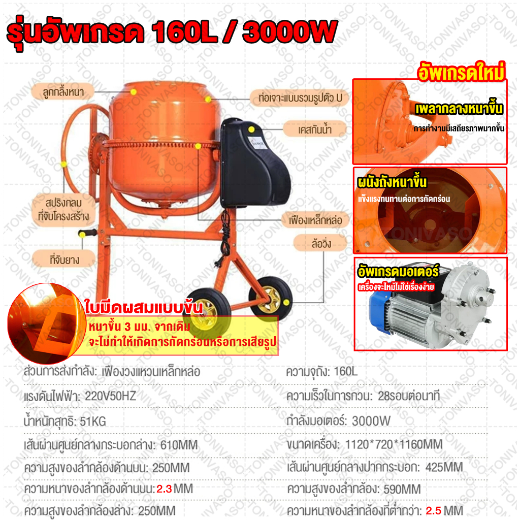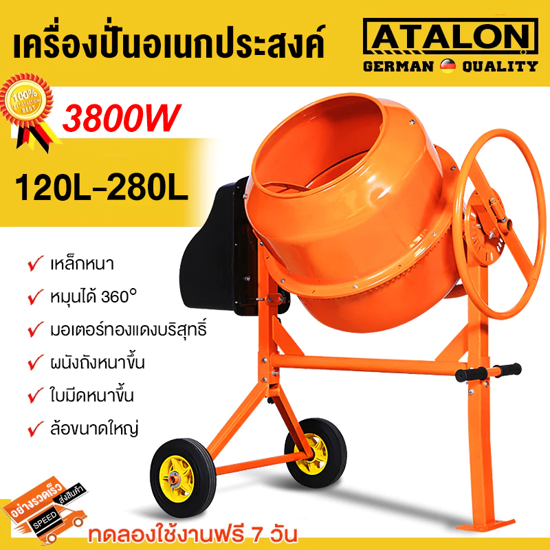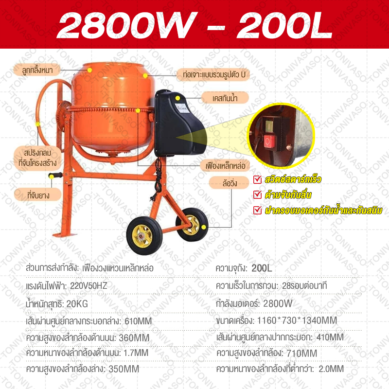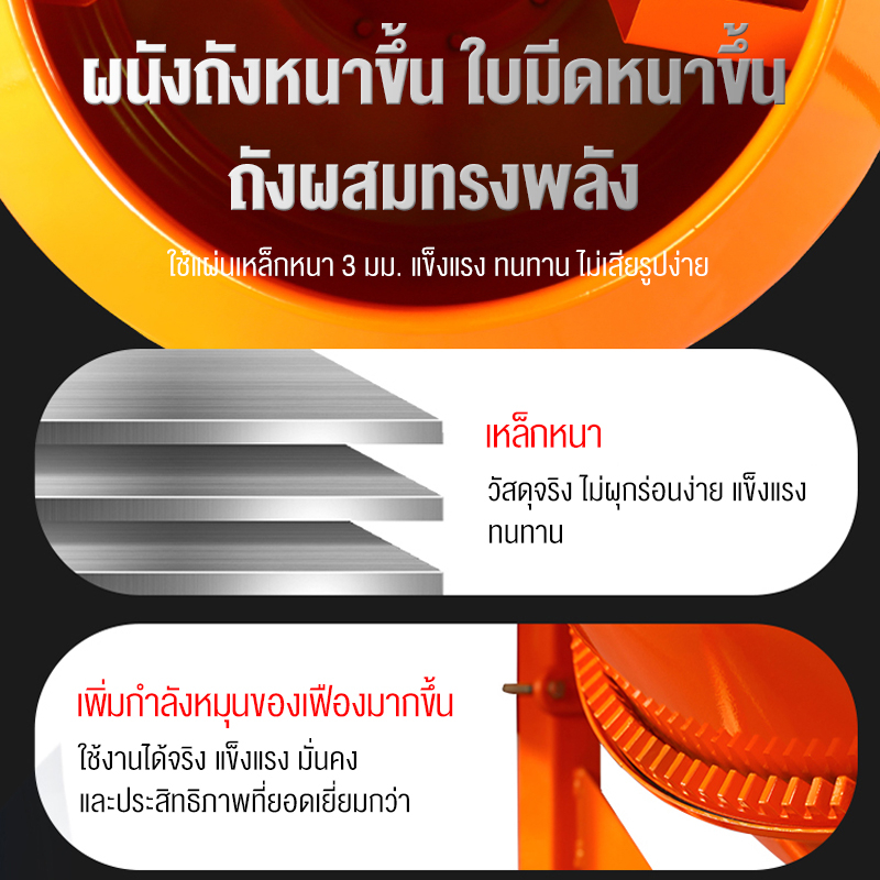 โม่ผสมปูนคอนกรีต 240ลิตร มอเตอร์พันด้วยทองแดง 100% เสียงเบา แข็งแรง ทนทาน ใช้งานได้สะดวกและง่ายต่อการเคลื่อนย้าย มีมอเตอ
