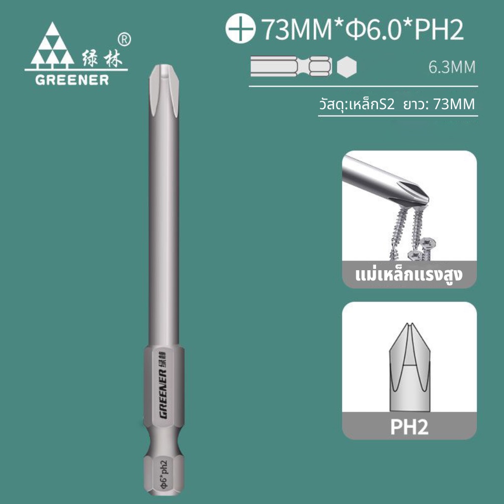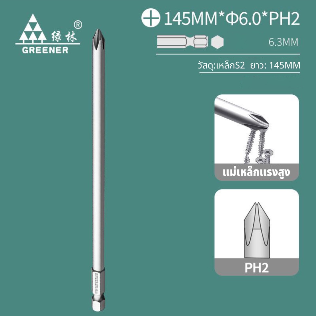 GREENER ดอกไขควงแฉก PH2 ดอกไขควงแม่เหล็กแรงสูง ดอกไขควงยาว 47-195mm