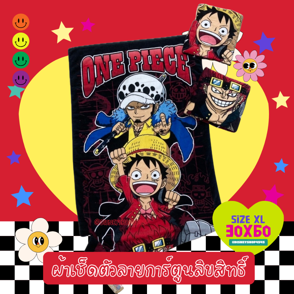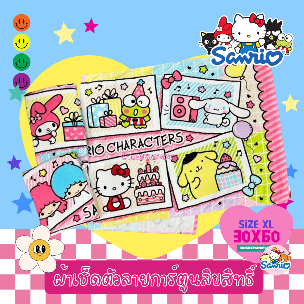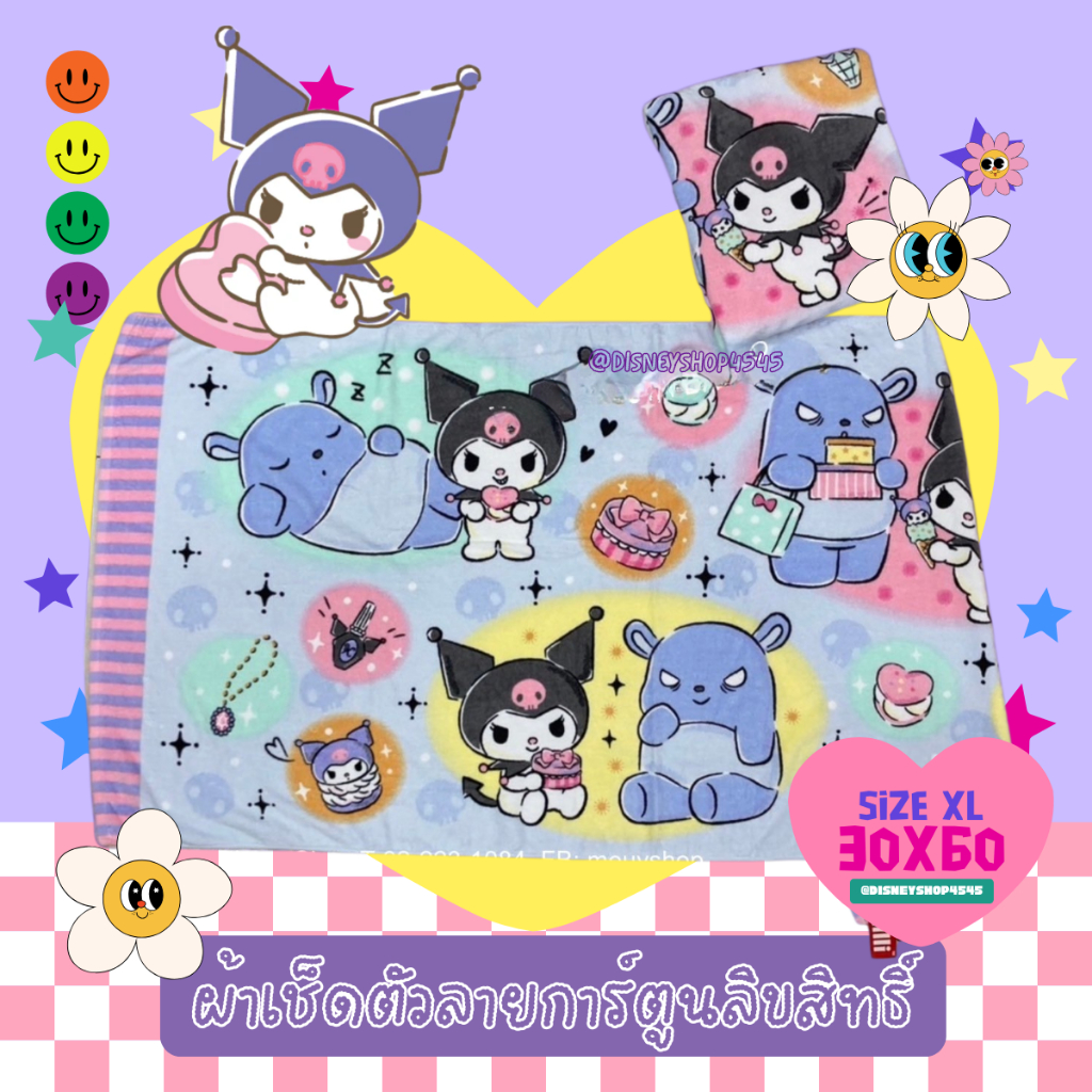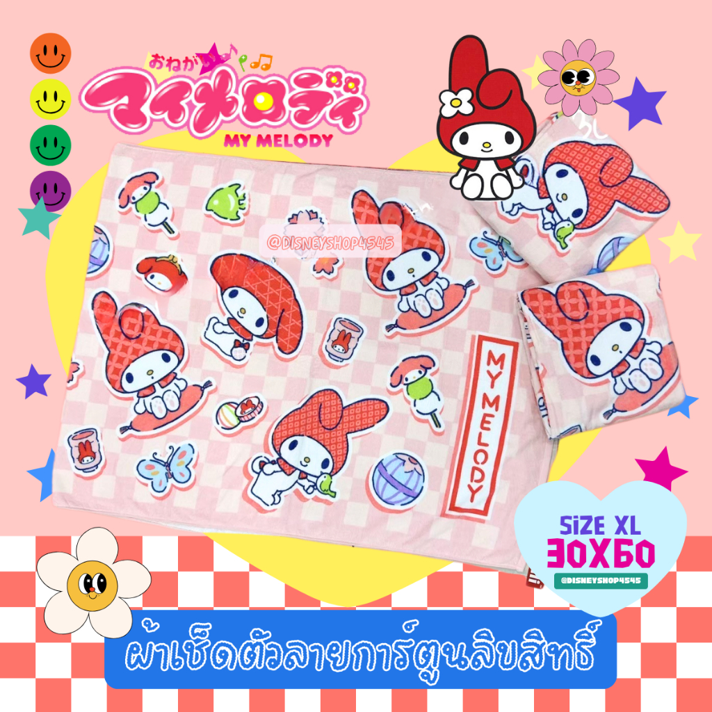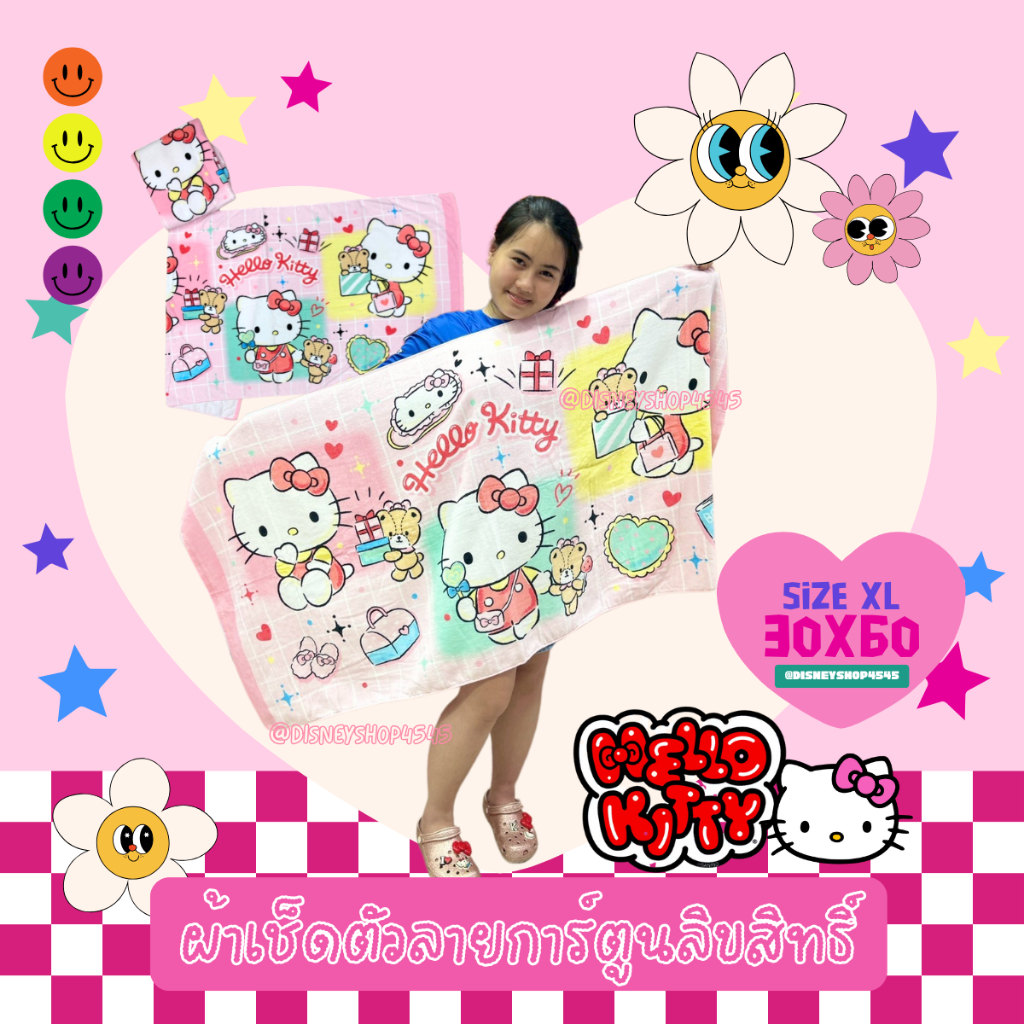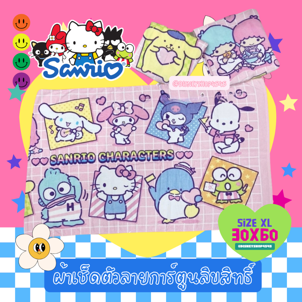 sizeXL ผ้าเช็ดตัว ผ้าขนหนู 30x60นิ้ว ลิขสิทธิ์แท้100% ผืนใหญ่มาก! ลายการ์ตูนลิขสิทธิ์ ซานริโอ้ วันพีซ