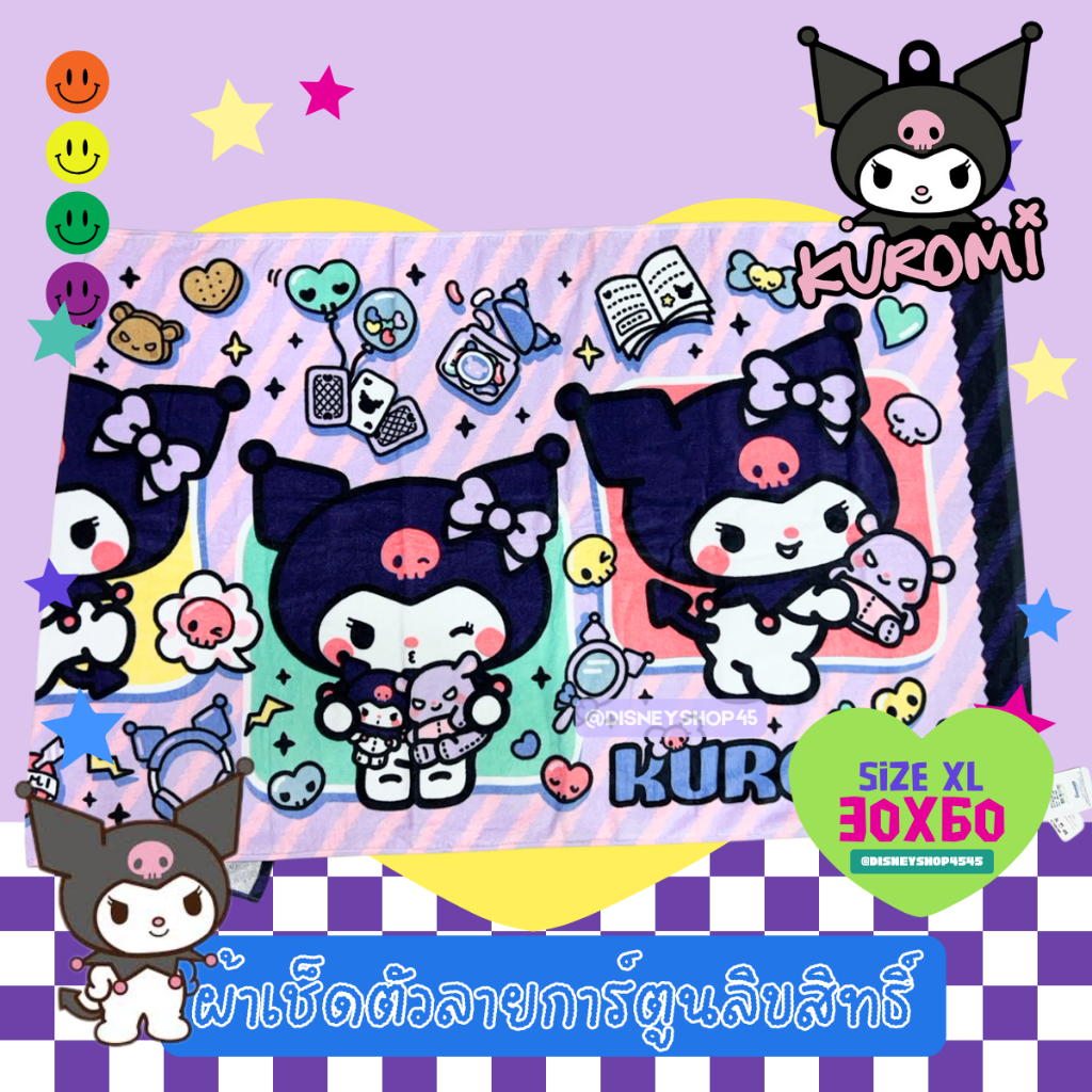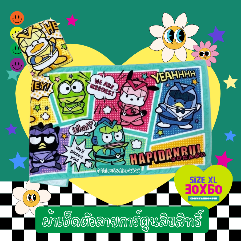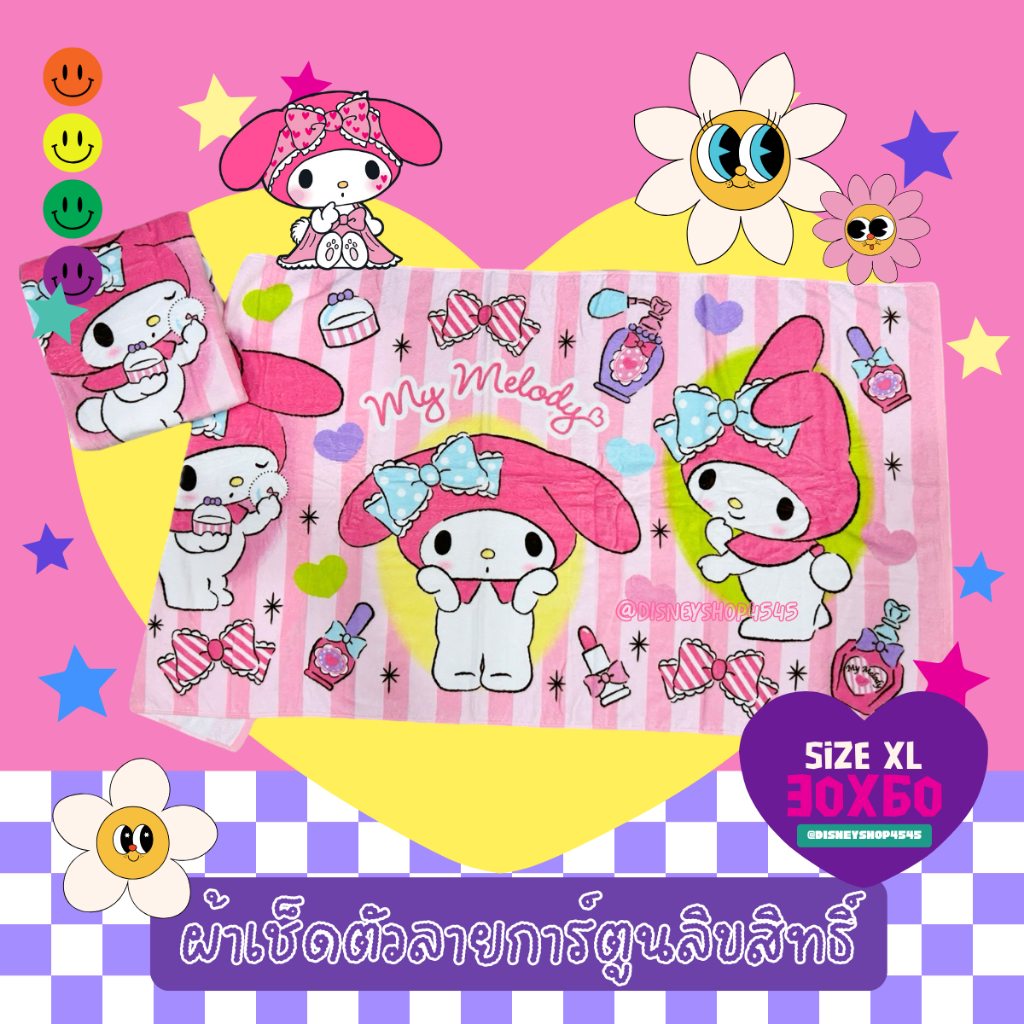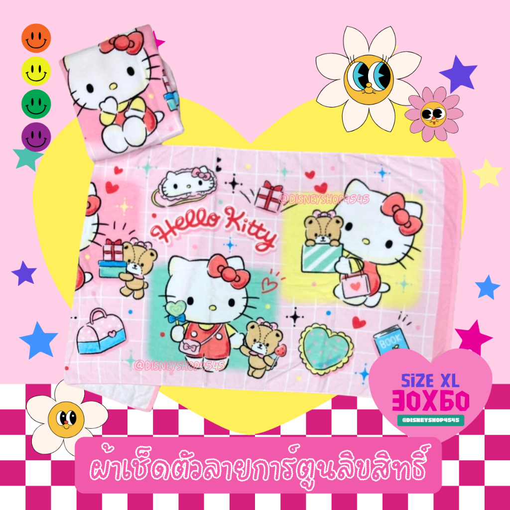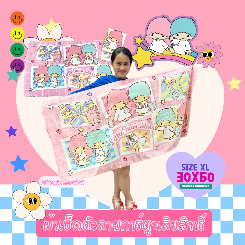 sizeXL ผ้าเช็ดตัว ผ้าขนหนู 30x60นิ้ว ลิขสิทธิ์แท้100% ผืนใหญ่มาก! ลายการ์ตูนลิขสิทธิ์ ซานริโอ้ วันพีซ