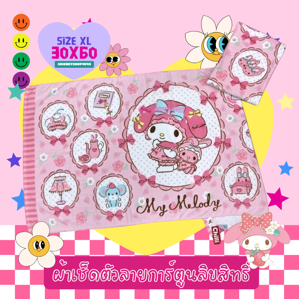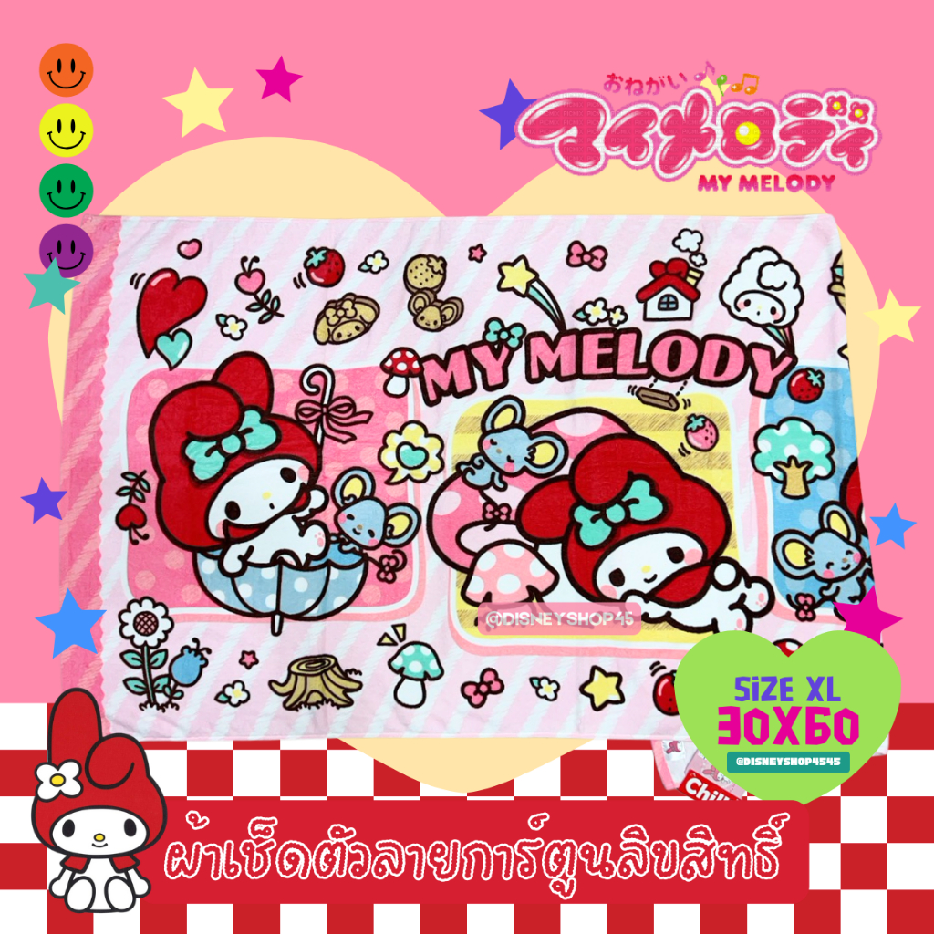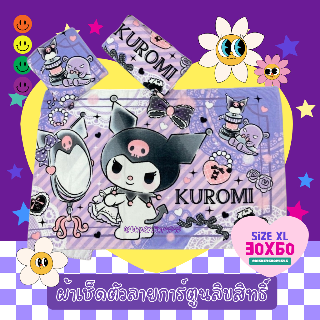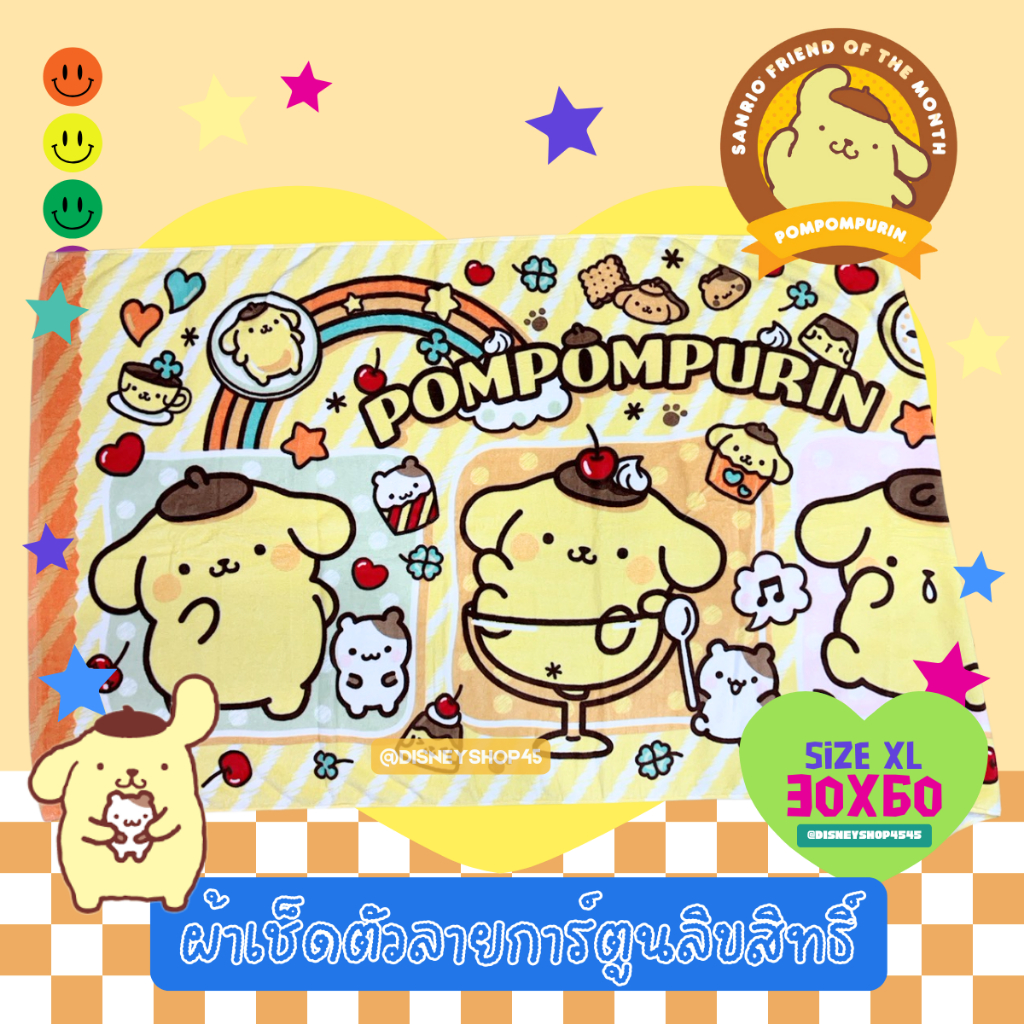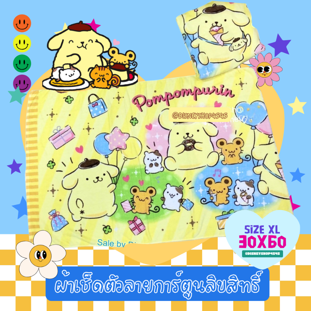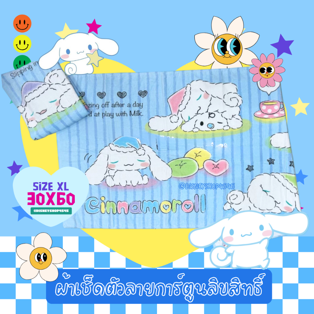 sizeXL ผ้าเช็ดตัว ผ้าขนหนู 30x60นิ้ว ลิขสิทธิ์แท้100% ผืนใหญ่มาก! ลายการ์ตูนลิขสิทธิ์ ซานริโอ้ วันพีซ