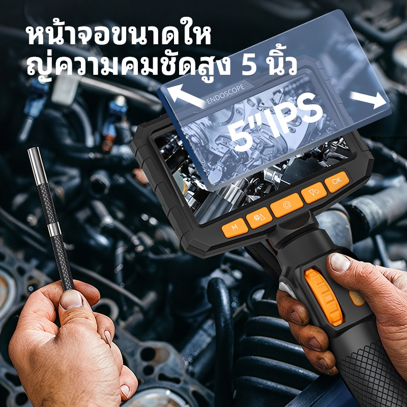 กล้องเอนโดสโคปพร้อมไฟส่องตรวจ กล้องส่องท่อIPS 5นิ้วกันน้ำได้ สายเคเบิลแบบยืดหยุ่นส รถยนต์ ท่อ รถยนต์
