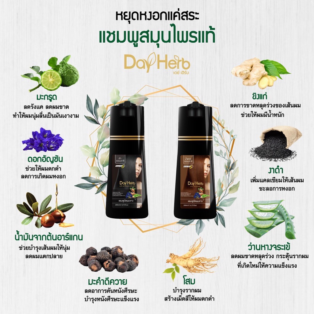 DayHerb แชมพูปิดผมขาว สมุนไพรแท้ ปิดหงอก Day Herb ลดหงอก ผมดำใน 5 นาที