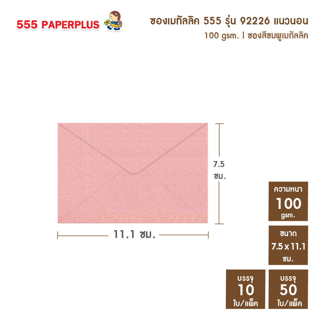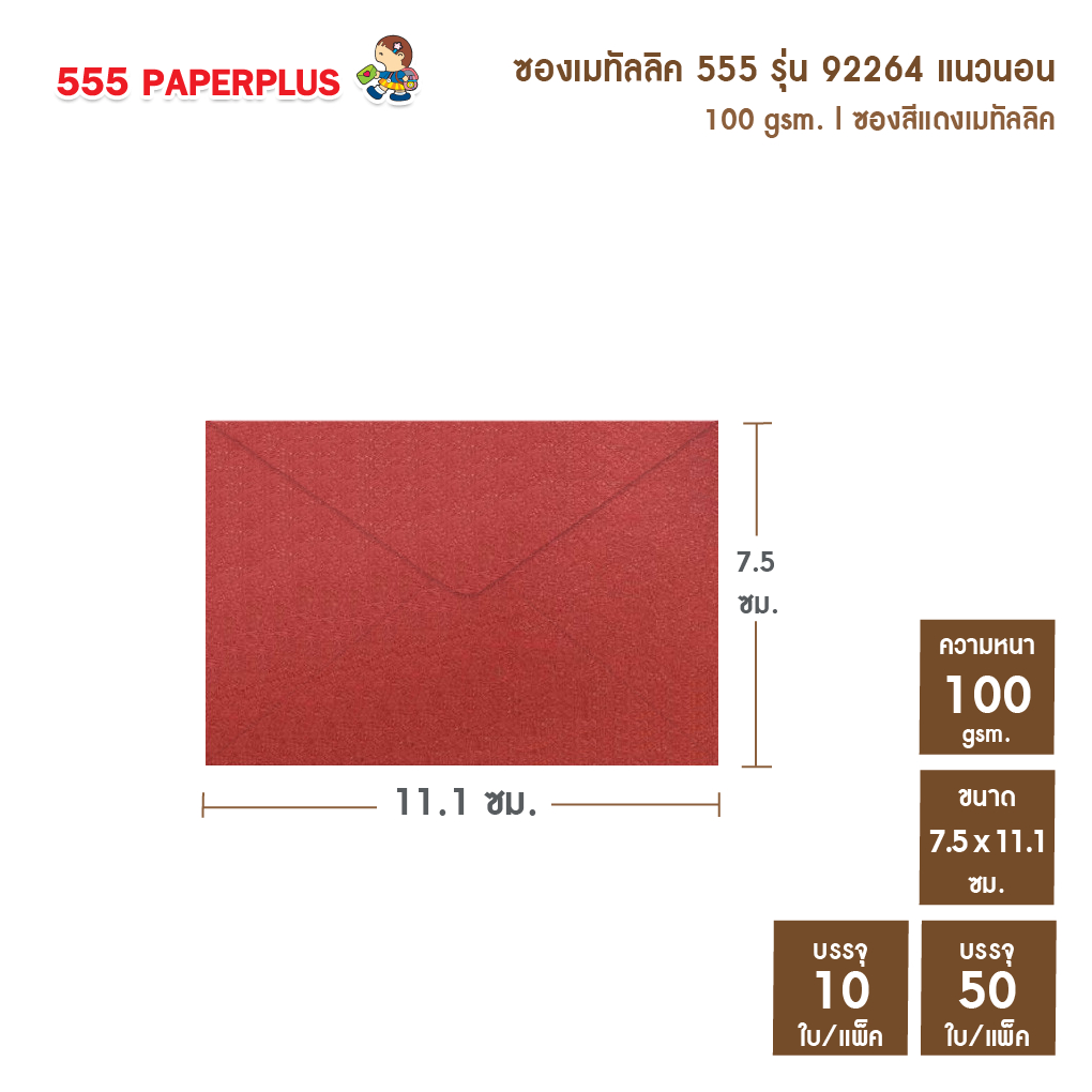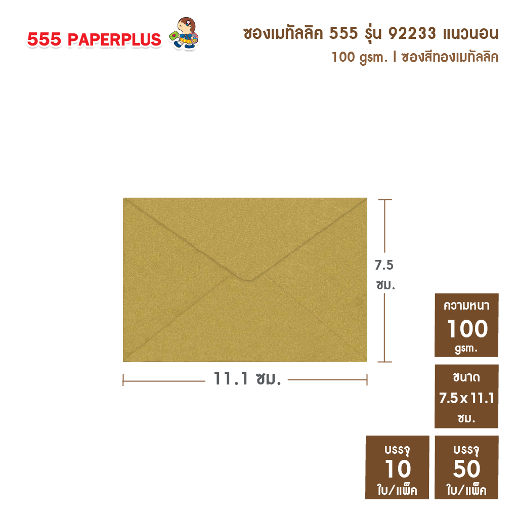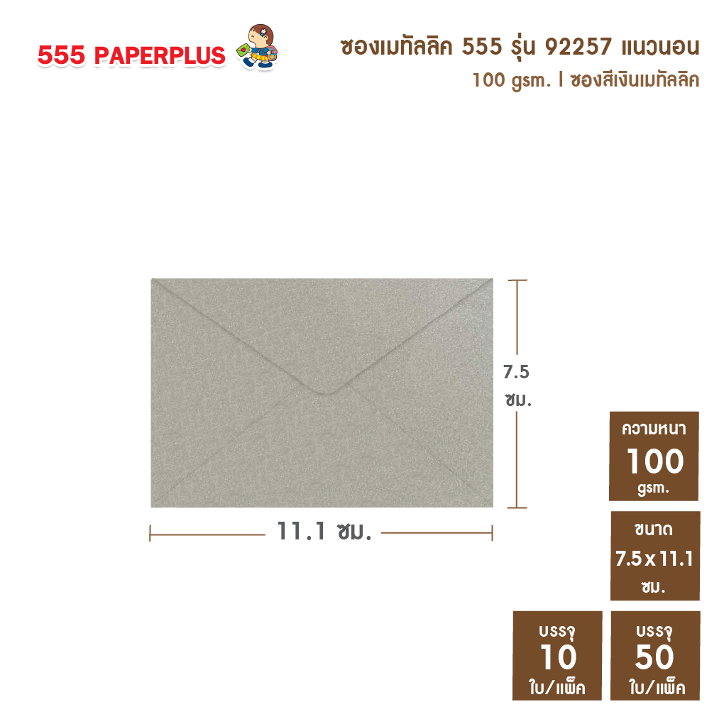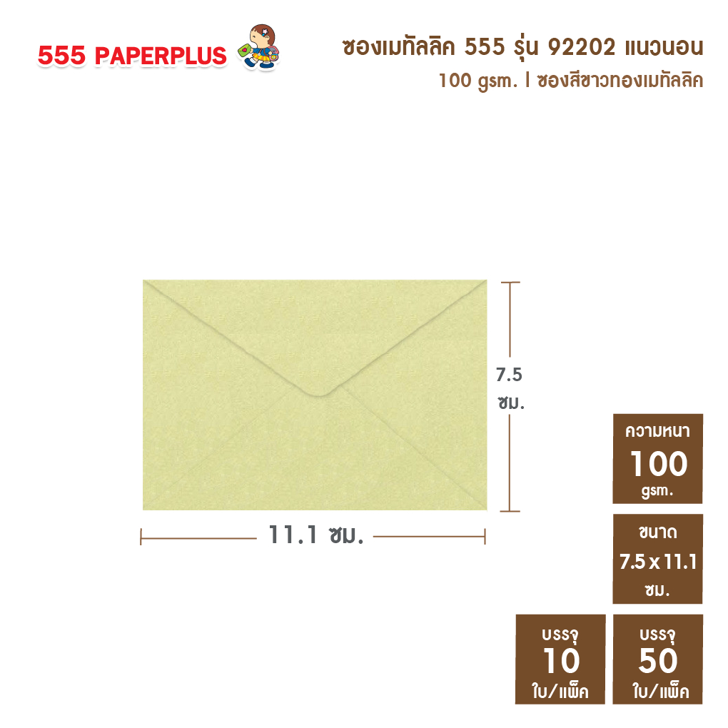 [แพ็ค10ใบ] [แพ็ค50ใบ]ซองใส่การ์ดเล็ก ซองเมทัลลิค 555 NO.3 1/2 ⭐️ขนาดซอง 7.5 x 11.1ซม. ✅การ์ด7x10 ซม