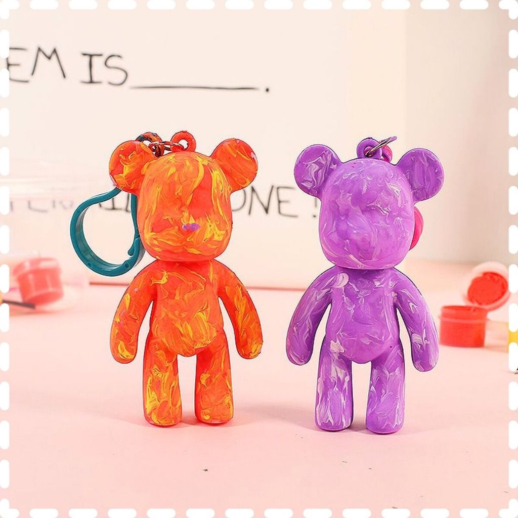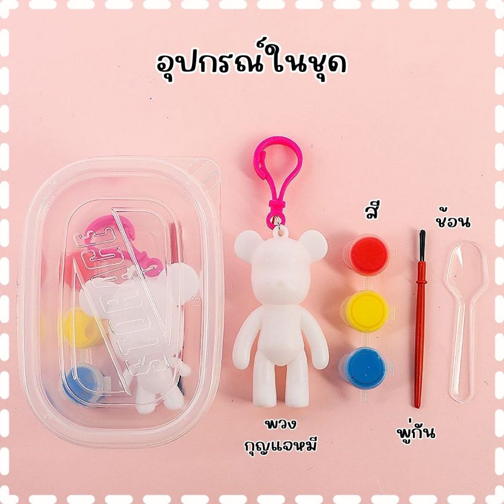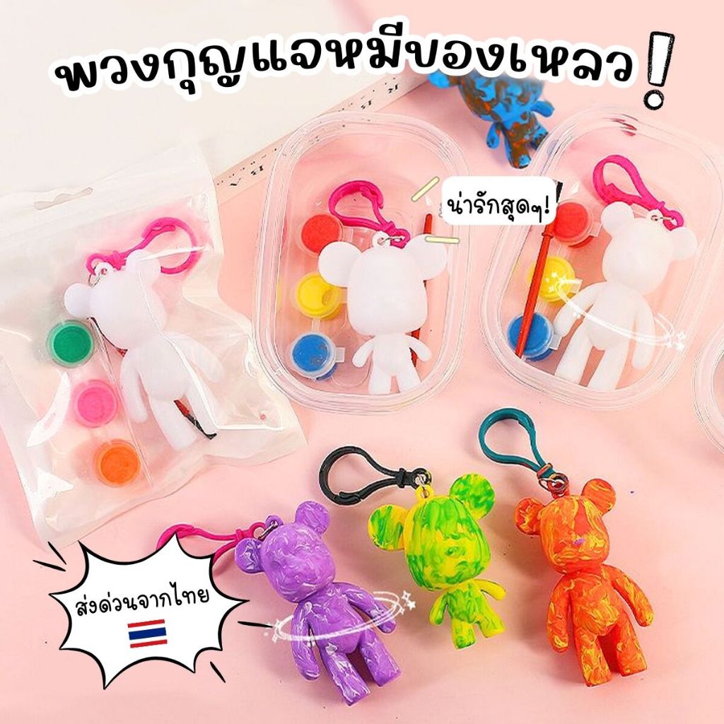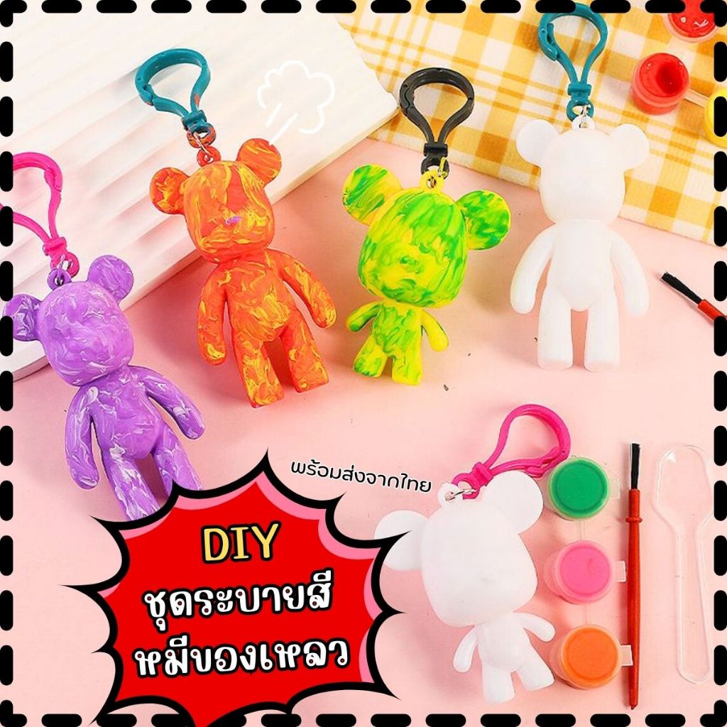 DIY พวงกุญแจหมีของเหลว ชุดระบายสีน่ารักๆ จานสี ของเล่นศิลปะ ห้อยกระเป๋าได้ สุ่มสี / สุ่มแบบ พร้อมส่งในไทย!!