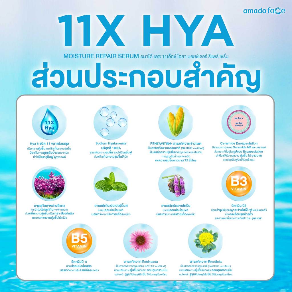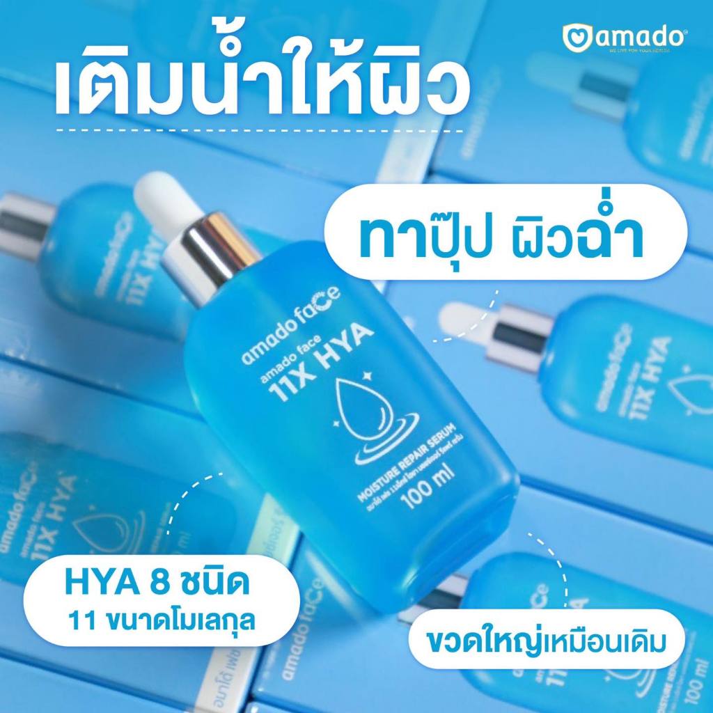 Amado Face 11X Hya Moisture Repair Serum อมาโด้ เฟส 11x ไฮยา เซรั่ม [เซรั่มสีฟ้า] [100 ml.] [1 กล่อง] ฟื้นฟูผิวหน้า