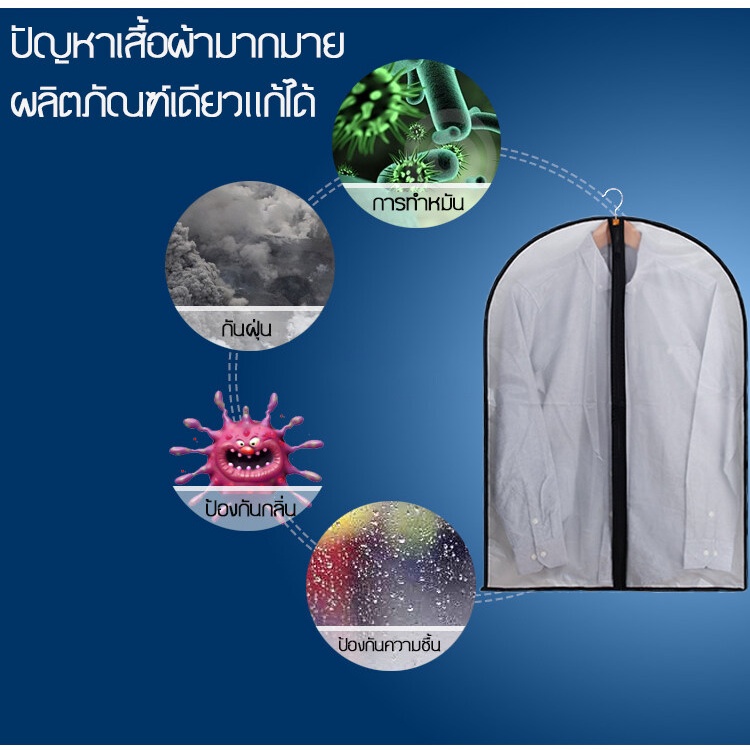 ถุงคลุมเสื้อผ้า PEVA เพิ่มความหนา กันฝุ่นกันชื้น 60x140ซม./60x120ซม./60x100ซม./60x80ซม.