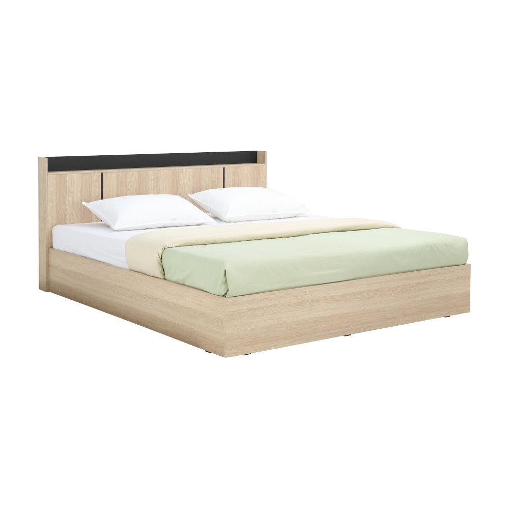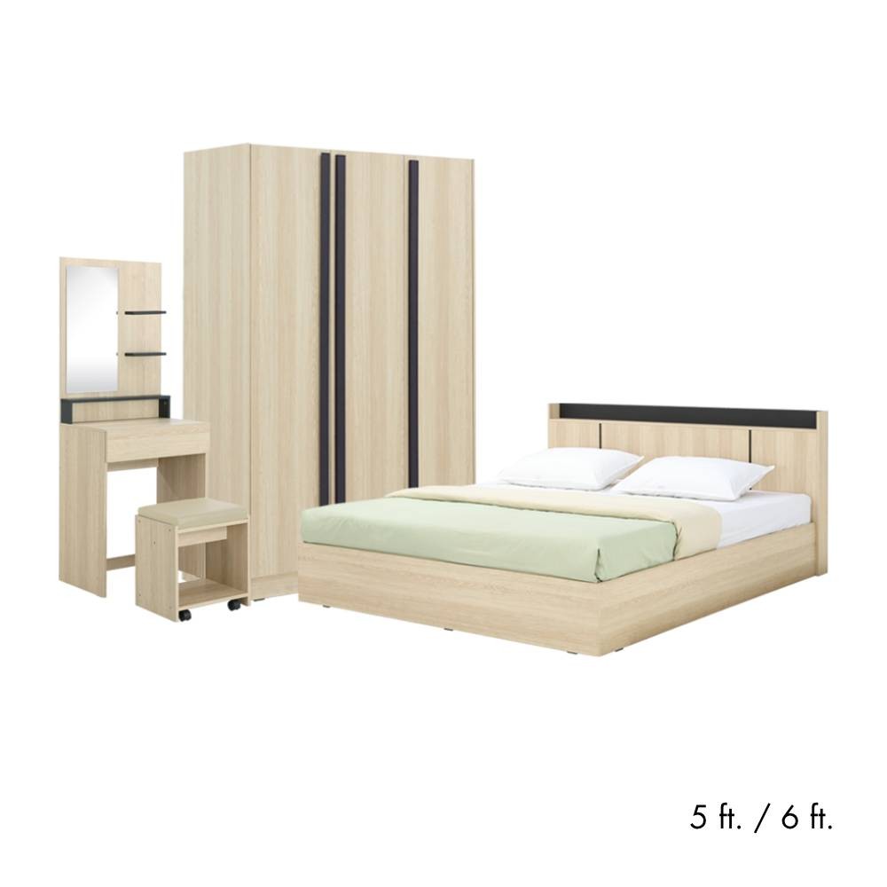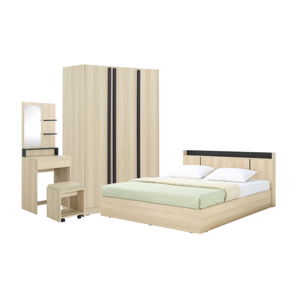 HomeHuk ชุดห้องนอน รุ่นแชมป์ (เตียง, ตู้เสื้อผ้า, โต๊ะเครื่องแป้งพร้อมสตูล) - สีไลท์ วู้ด/ดำ