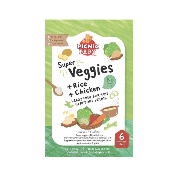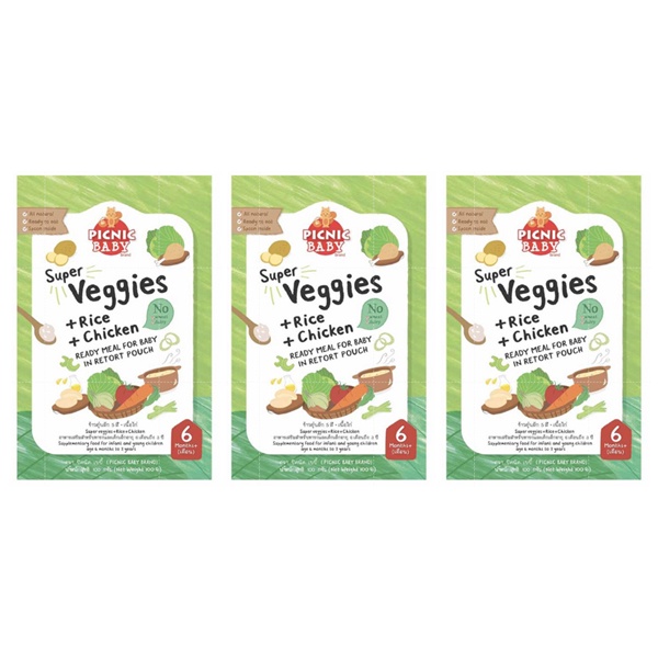 Picnic Baby Food ข้าวตุ๋นผัก 5สี+เนื้อไก่ 1-3กล่อง