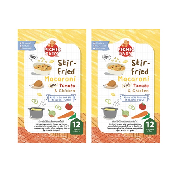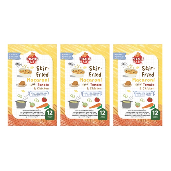 Picnic Baby Food มักโรนีผัดมะเขือเทศและเนื้อไก่ 1-3กล่อง