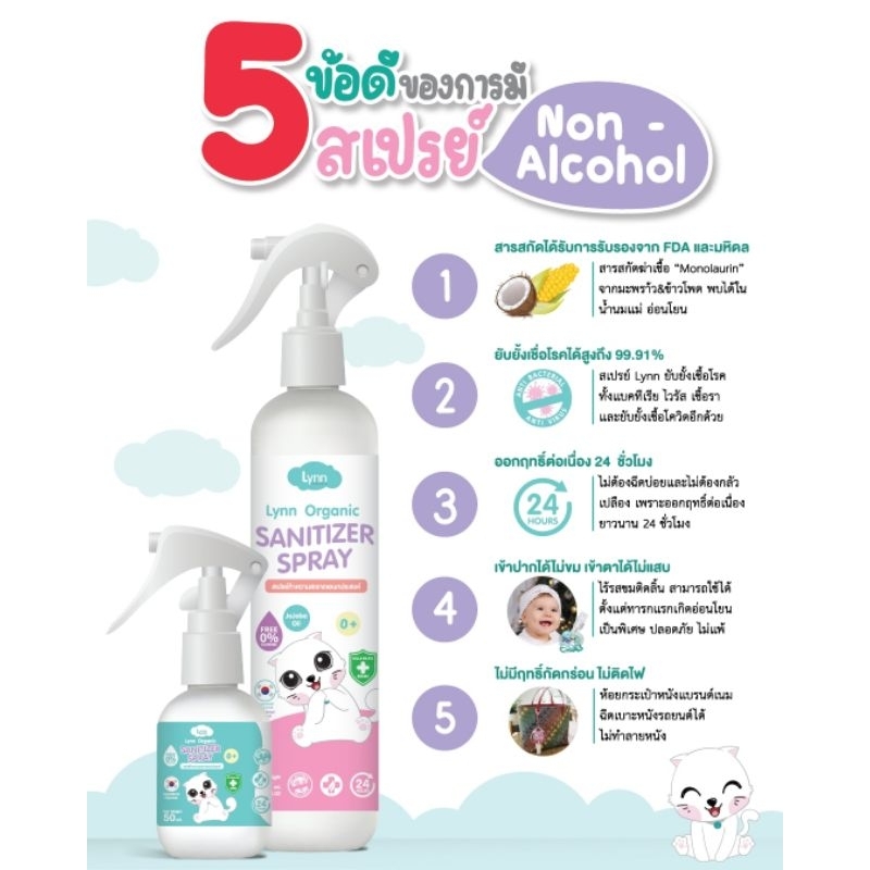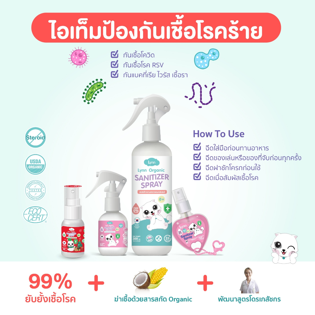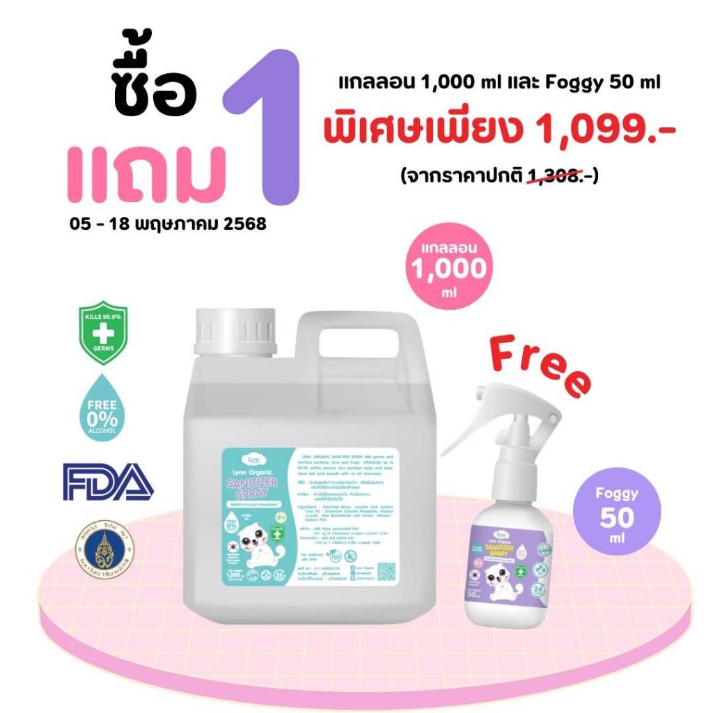 (โปรพิเศษ 1 แถม 1) Lynn Organic Non-Alcohol Sanitizer Spray ใช้ได้แรกเกิด อ่อนโยนเทียบเท่านมแม่ แกลลนแบบเติม 1000 มล
