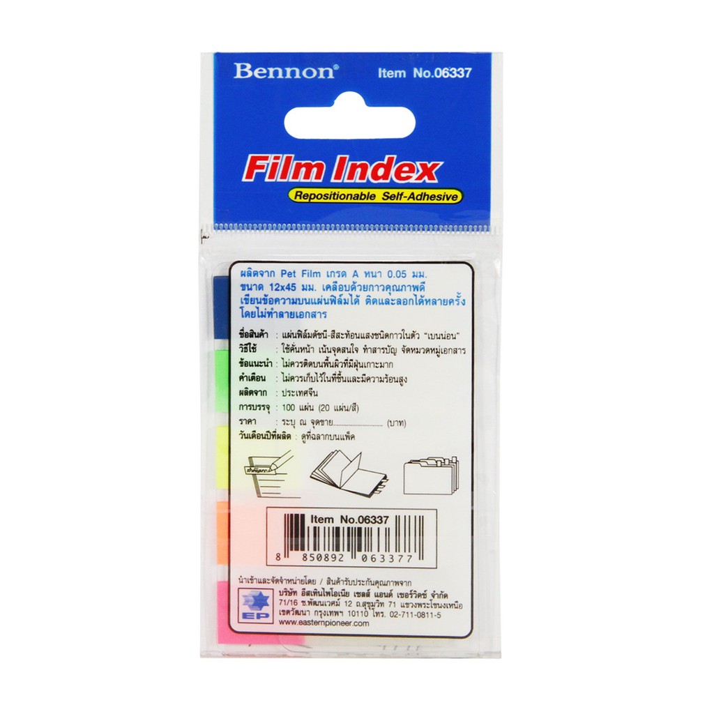 ฟิล์มโน้ตดัชนีชนิดกาวในตัว BENNON 06337 ขนาด 1.2x4.5 ซม. (1x5) คละสีนีออน (PC)