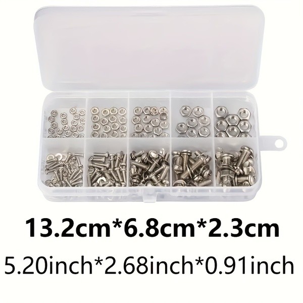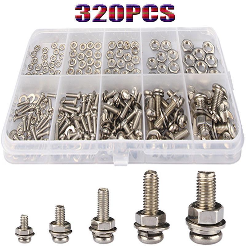 ชุดสกรูและน็อตสแตนเลส 320 ชิ้น ทนต่อการกัดกร่อน ขนาด M2-M5 สำหรับ DIY ประกอบเฟอร์นิเจอร์และซ่อมเครื่องจักร