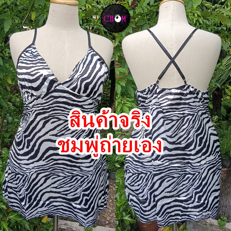 ชุดนอนซาติน M-2XL ชุดนอนซาตินเซ็กซี่ ชุดนอนซาตินสายเดี่ยว ชุดนอนซาตินกระโปรง ชุดนอนผ้าซาติน รุ่นม้าลาย