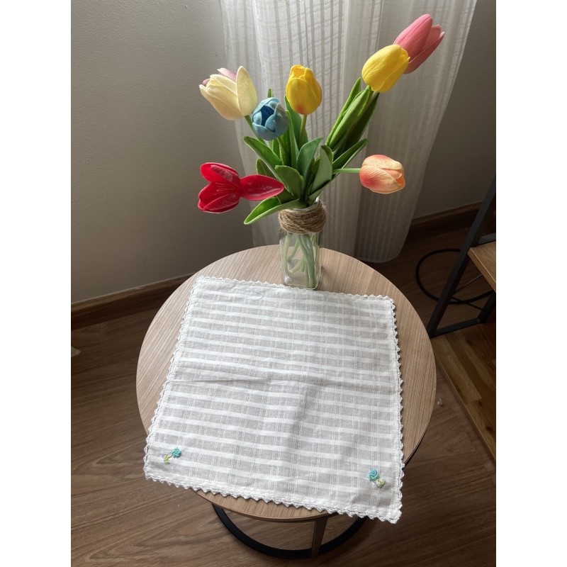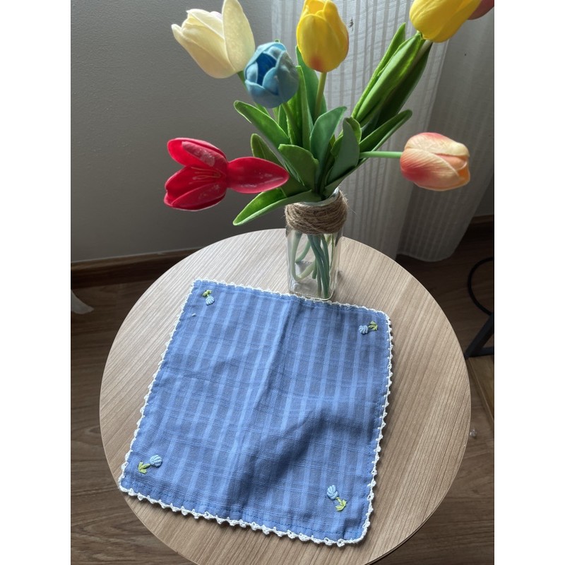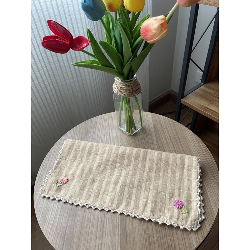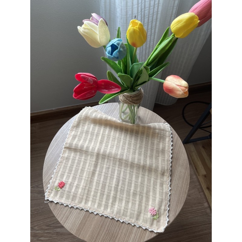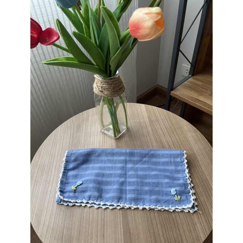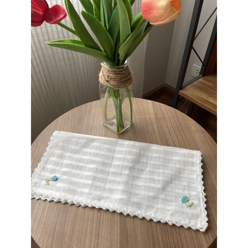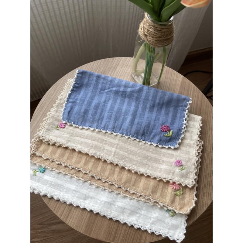 ผ้าเช็ดหน้าผ้าฝ้าย สีขาว ปักลายดอกไม้