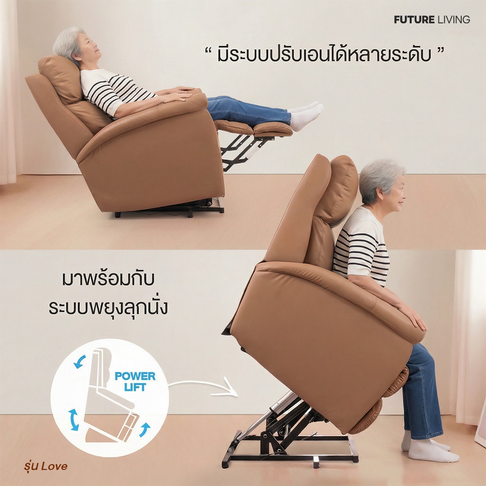 Recliner รุ่น พยุงลุก ช่วยพยุงผู้สูงอายุ/หญิงตั้งครรภ์ ควบคุมด้วยรีโมท เก้าอี้โซฟารีไคลเนอร์ (ติดตั้งฟรีกทม.และปริมณฑล)