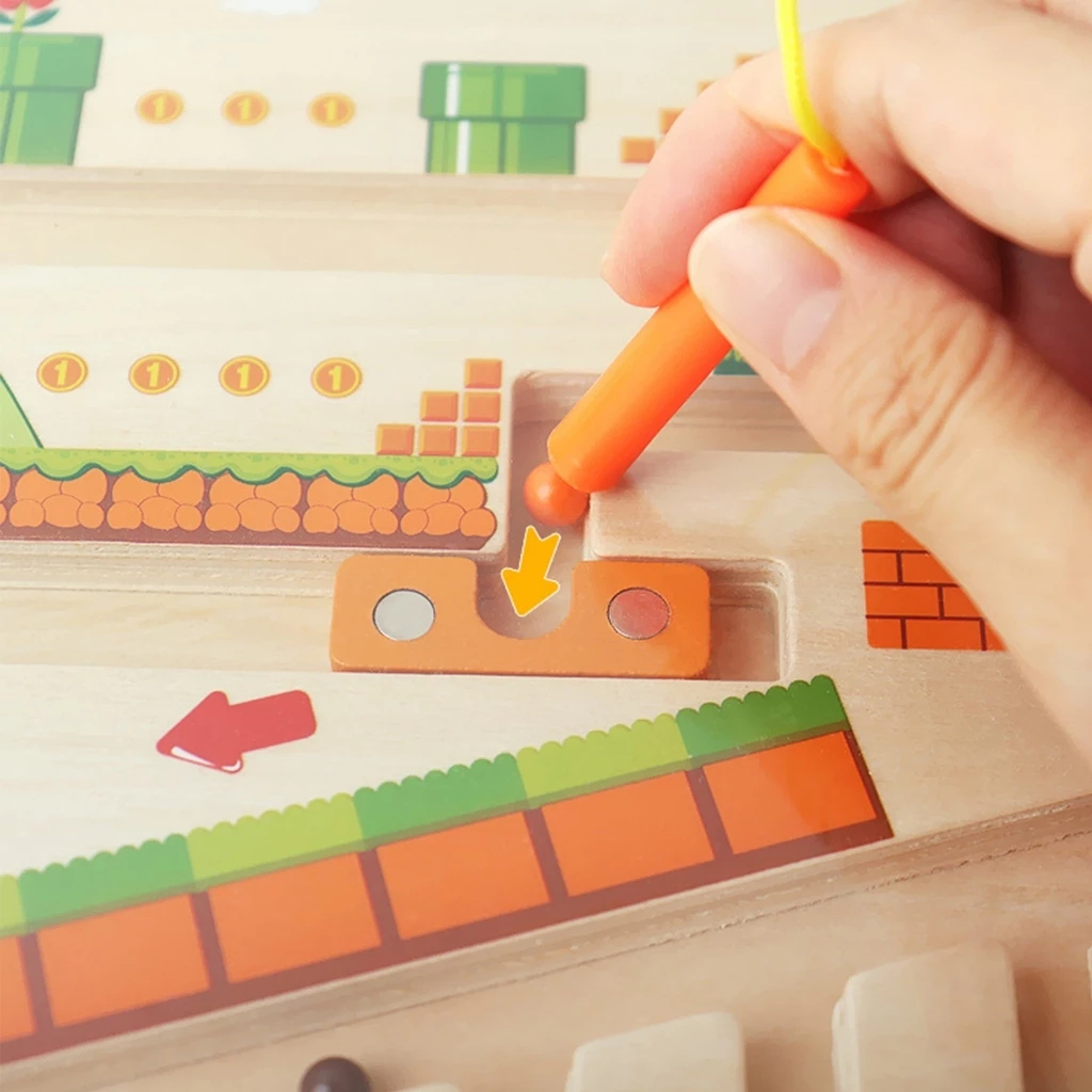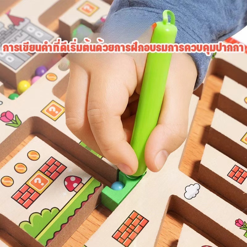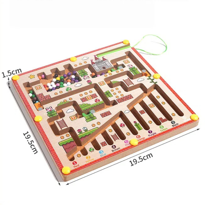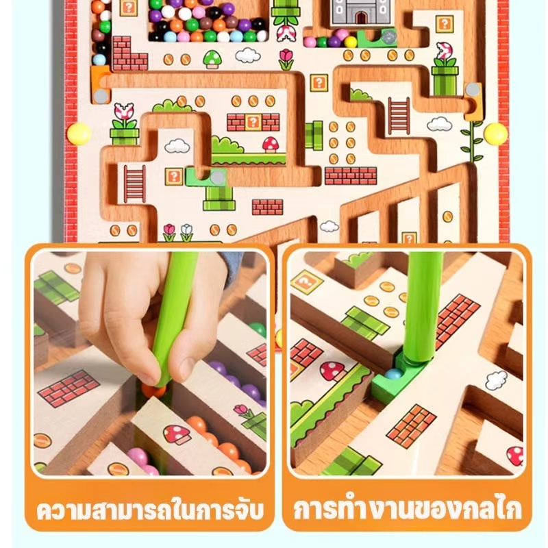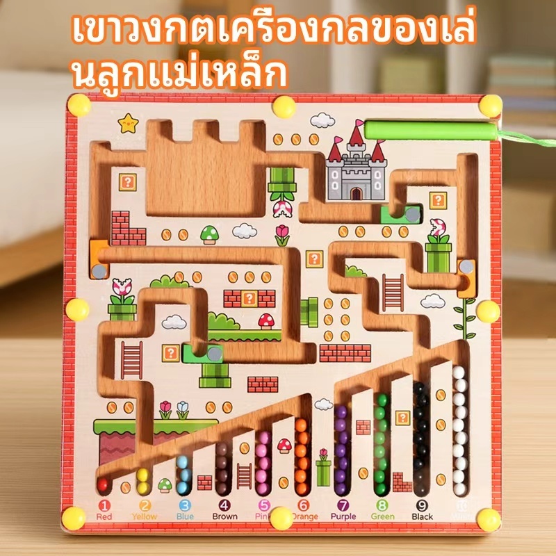เกมกระดานเขาวงกตแม่เหล็ก ของเล่นเด็ก เสริมการพัฒนาการเด็ก มีปากกาแม่เหล็ก ของเล่นไม้ แยกสีลูกปัดแม่เหล็ก