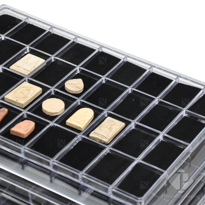 กล่องพลาสติกแบบกั้น36ช่อง พร้อมฝาปิด มีแผ่นโฟมบุผ้ากำมะหยี่รองพื้นสีดำใส่ของได้อเนกประสงค์ พระเครื่อง เหรียญจิวเวอรี่ญPM