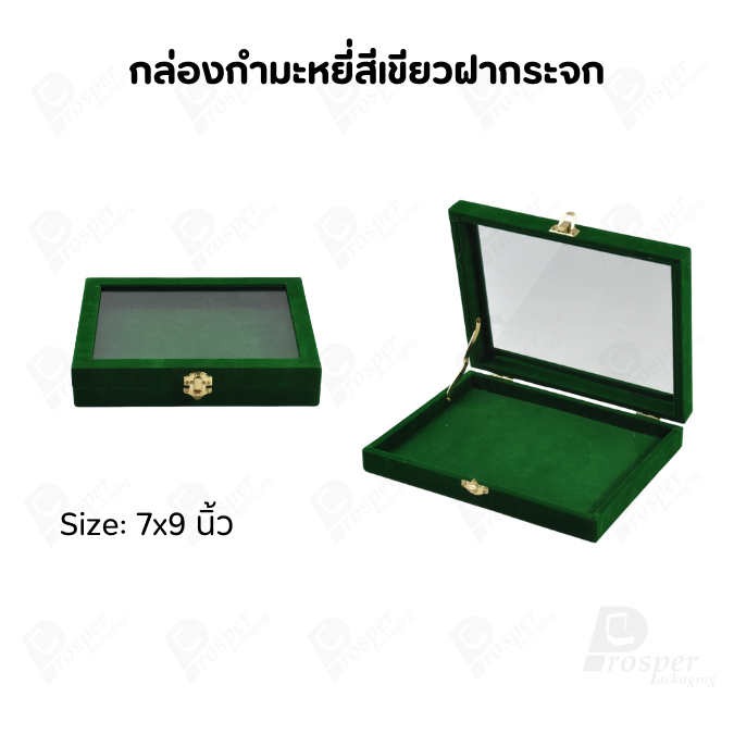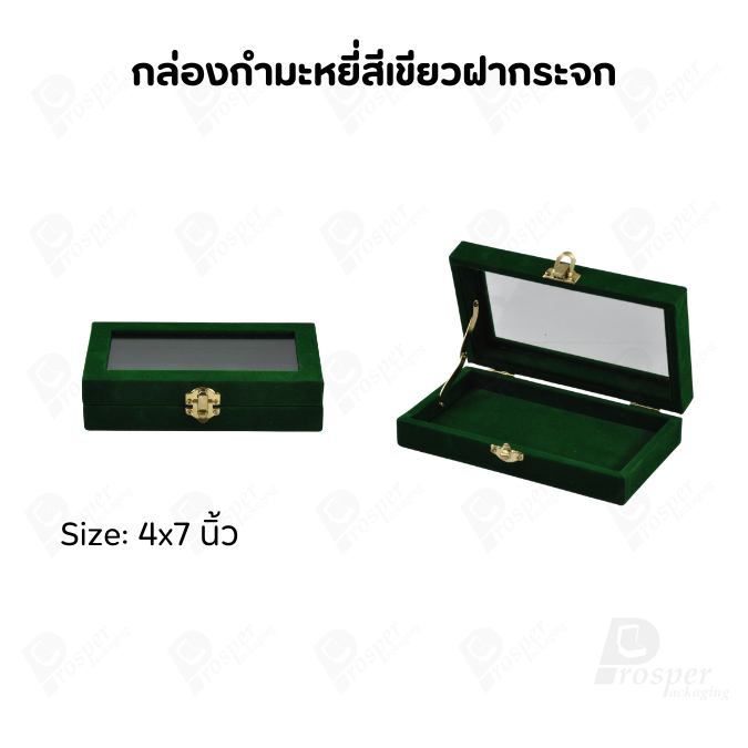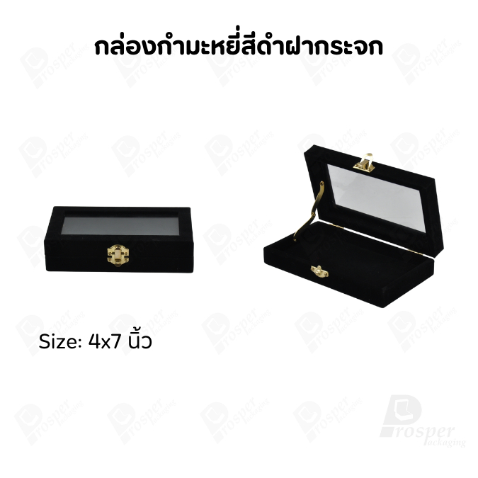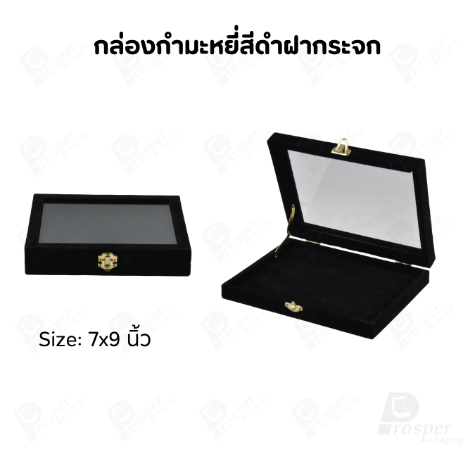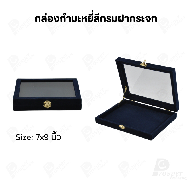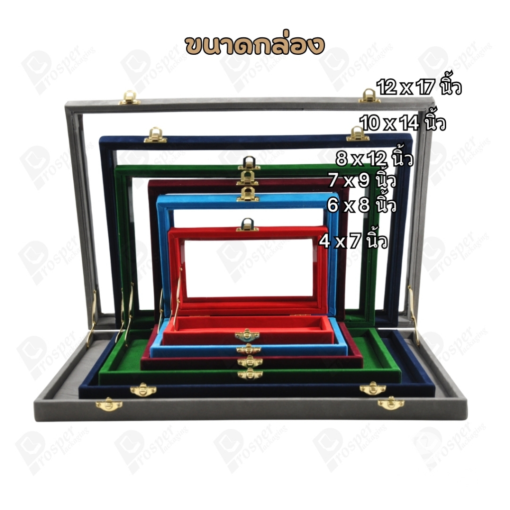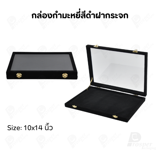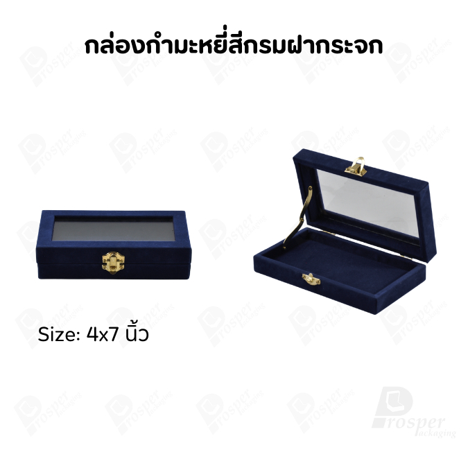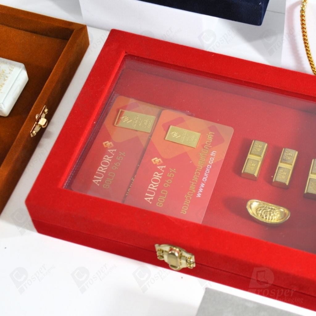 กล่องกำมะหยี่แบบปูเรียบแบบฝาใสเห็นด้านในกล่องได้ มีฝาปิดจัดใส่โชว์จิวเวอรี่ พระเครื่อง ทอง มีสีให้เลือกแต่ละสีมีความหมาย