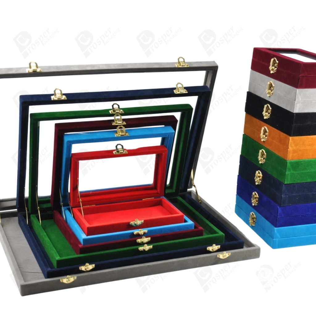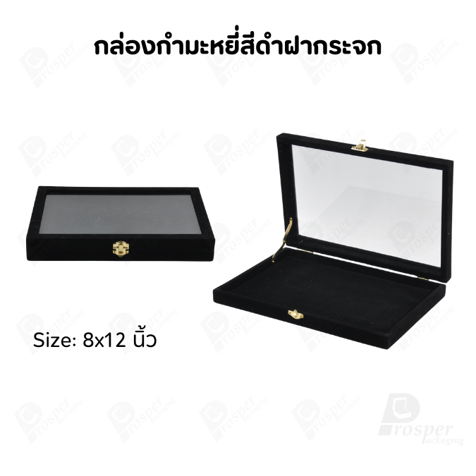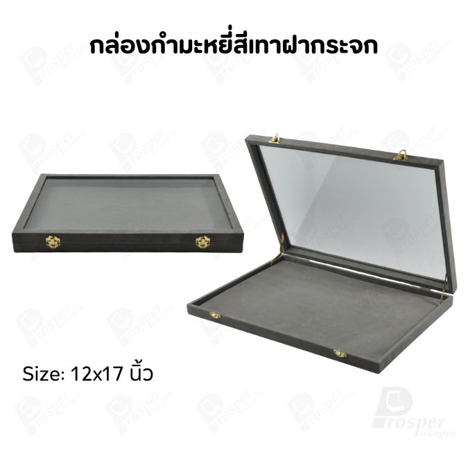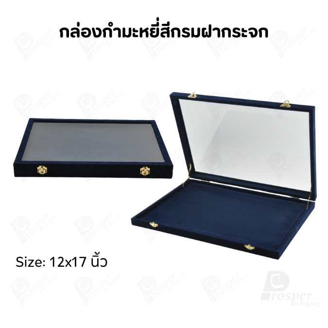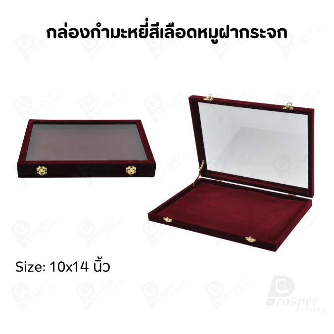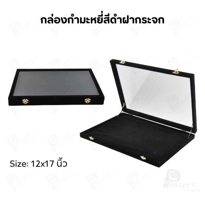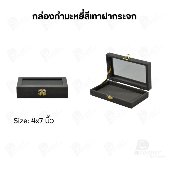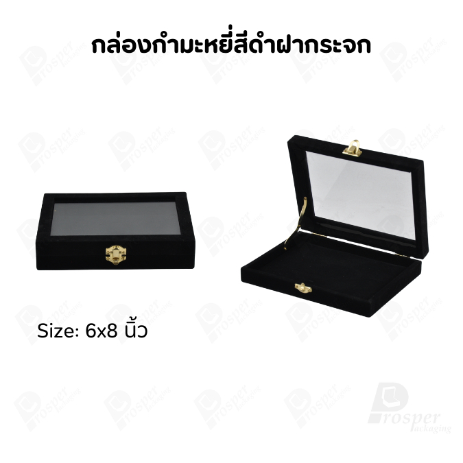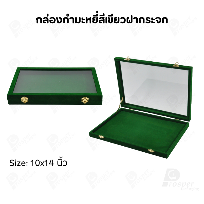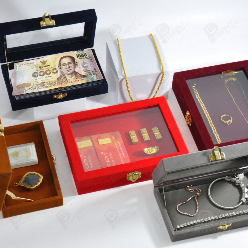กล่องกำมะหยี่แบบปูเรียบแบบฝาใสเห็นด้านในกล่องได้ มีฝาปิดจัดใส่โชว์จิวเวอรี่ พระเครื่อง ทอง มีสีให้เลือกแต่ละสีมีความหมาย