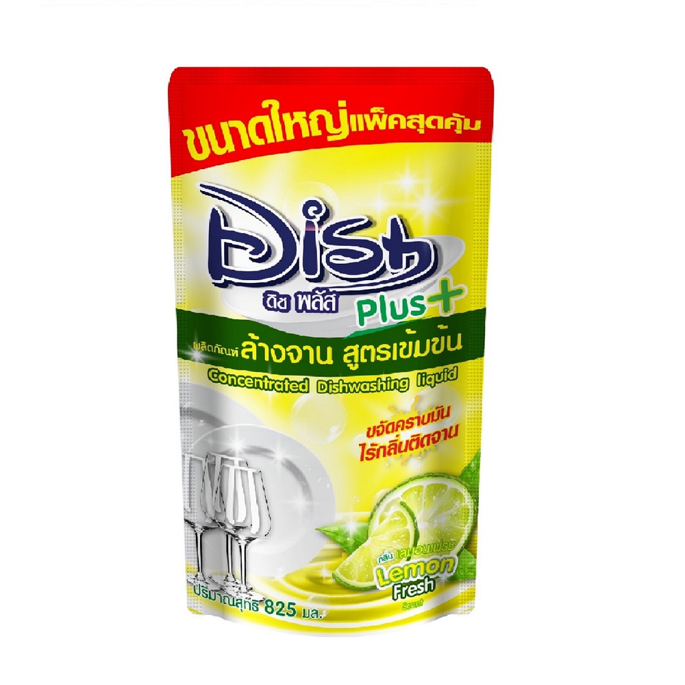 ดิชพลัส น้ำยาล้างจาน เลมอนเฟรช 825 มล.DISH PLUS WASHING LIQUID LEMONFRESH 825ML