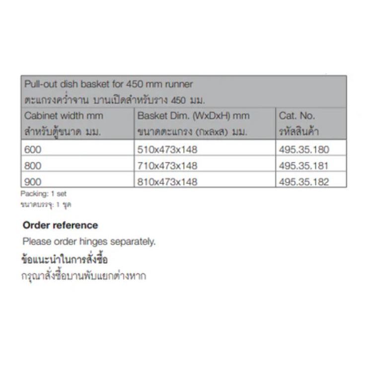 (Hafele) ชุดตะแกรงคว่ำจาน แบบเปิดหน้าบาน สำหรับตู้กว้าง 600-900 มม. (495.35.180-182)