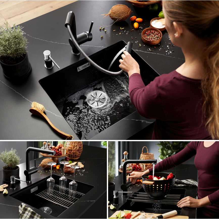 (Hafele) อ่างล้างจาน 1 หลุม แบบฝังใต้เคาน์เตอร์ รุ่น BLANCO SUBLINE 500-U สี Alu Metallic (495.39.506) (570.26.910)