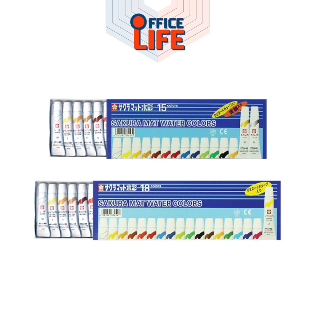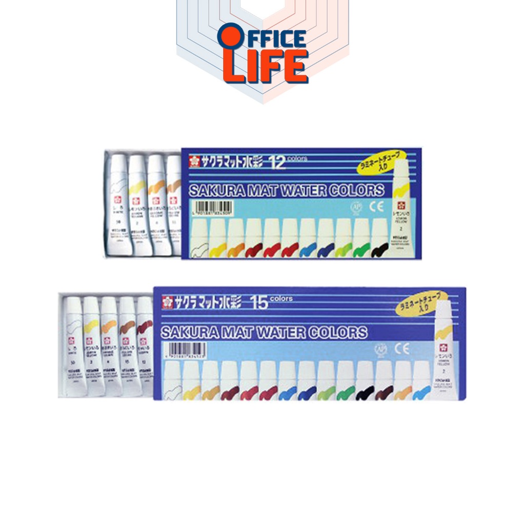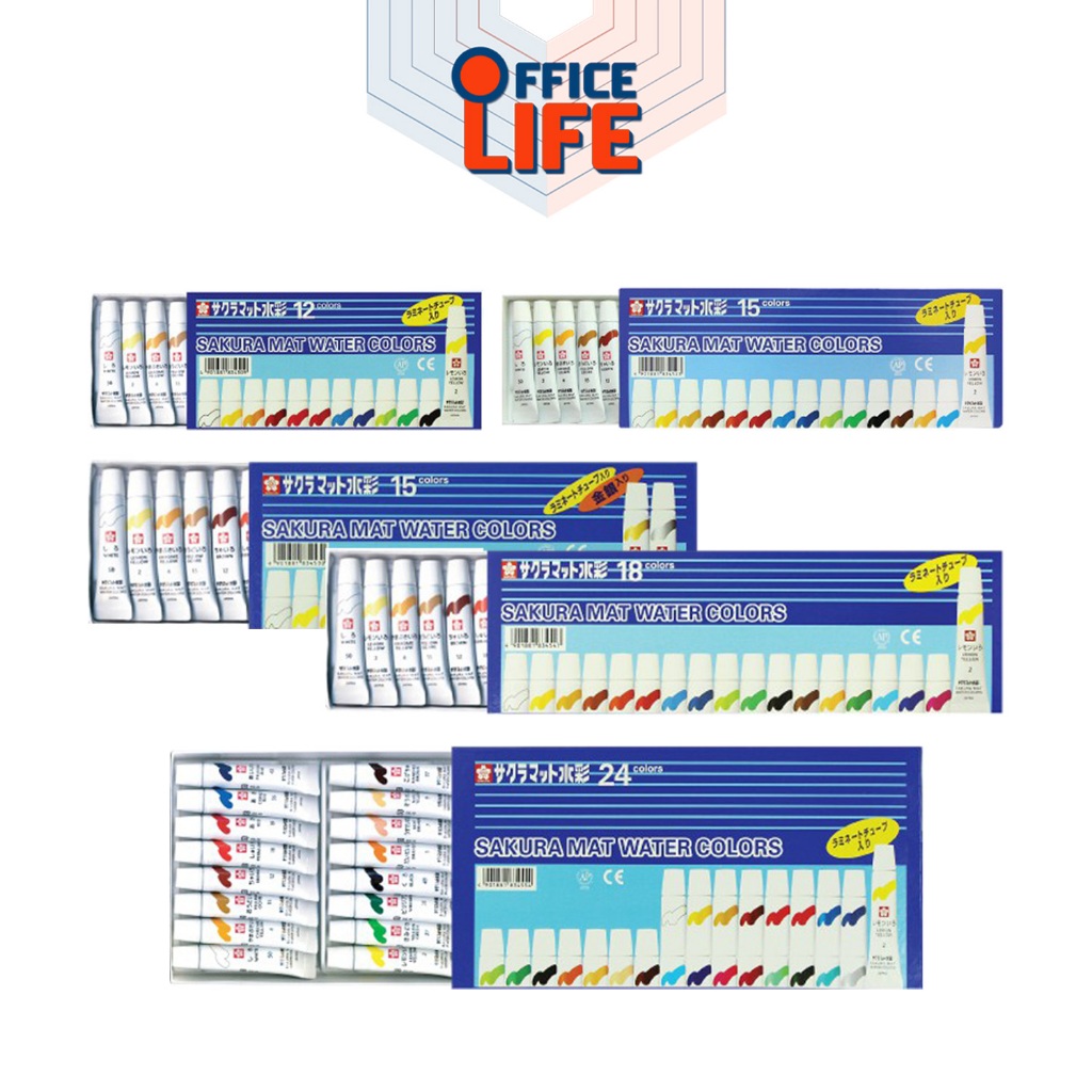 Sakura (ซากุระ) สีน้ำ สีหลอด รุ่น Mat Water Colors หลอดลามิเนต แบบ 12,15,18,24 สี ขนาด 5ml ( 1 กล่อง )