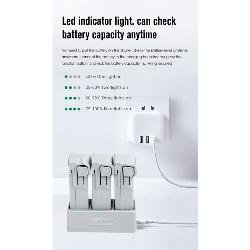 STARTRC 3 Way ชาร์จ Hub สําหรับ DJI Mini 4/Mini 3 PRO/Mini 3 แบตเตอรี่ Charger USB เที่ยวบินแบตเตอรี่ชาร์จพ่อบ้าน Fast Charging Dock สําหรับ DJI Mini 3 PRO