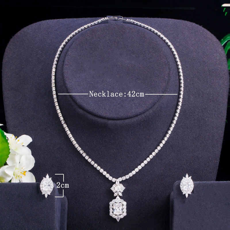 SEQUITO แฟชั่น CZ Zirconia คริสตัลสร้อยคอไข่มุกต่างหูผู้หญิงงานแต่งงานเครื่องประดับชุบเงินชุด JS160
