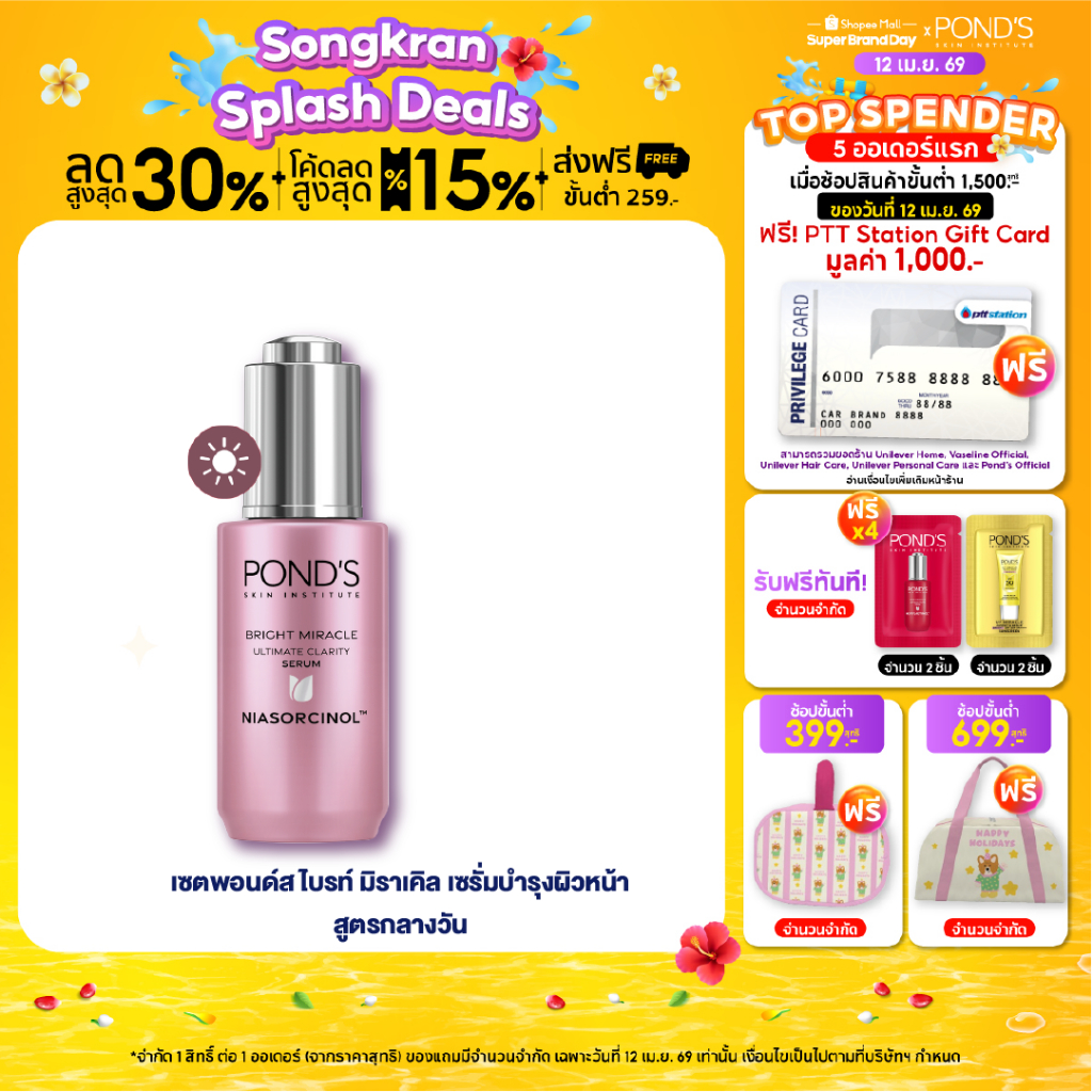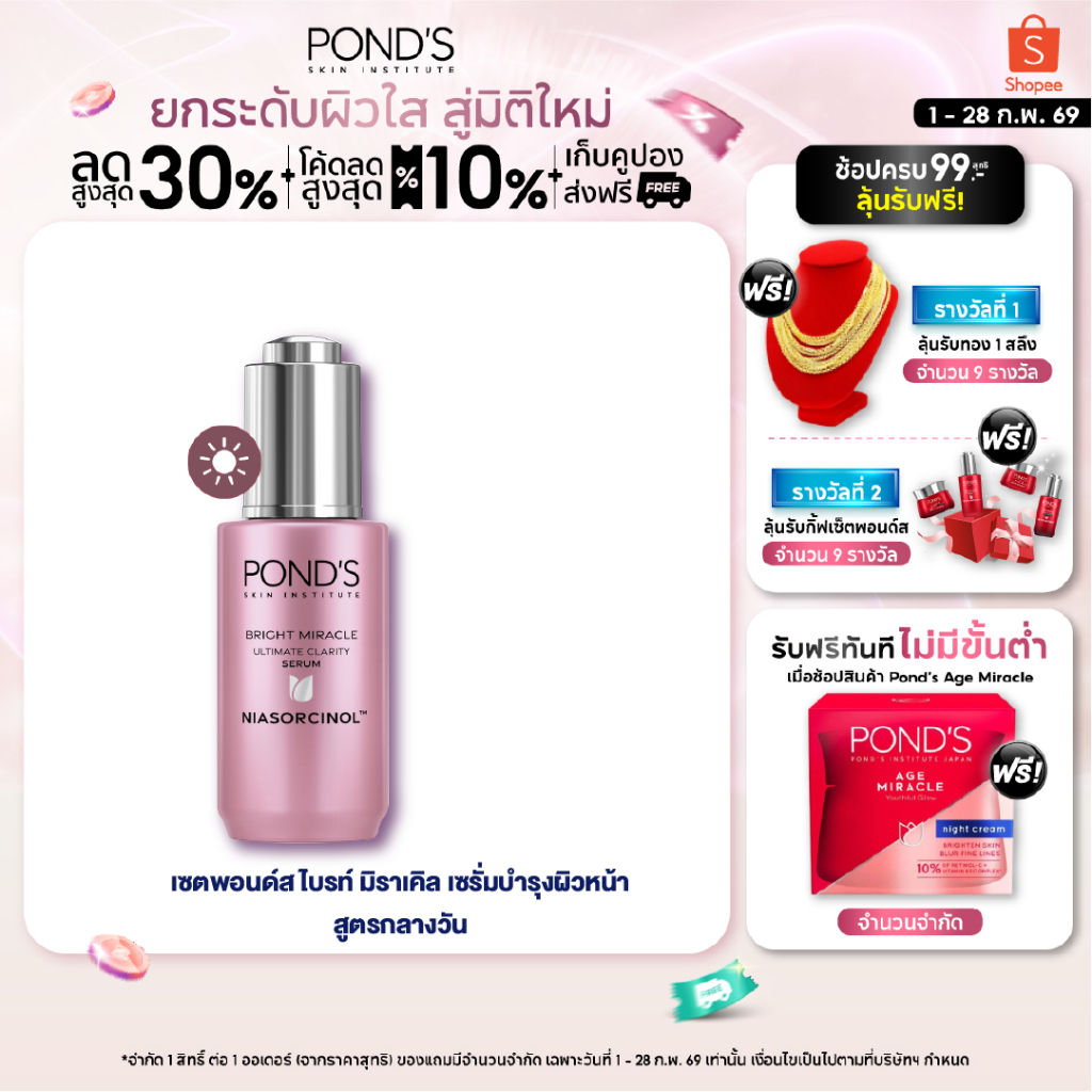 พอนด์ส ไบรท์ มิราเคิล เดย์ เซรั่ม เซรั่มหน้าใส ลดจุดดำ ผิวใสใน 3 วัน ไนอาซอร์ซินอล 30 ก.