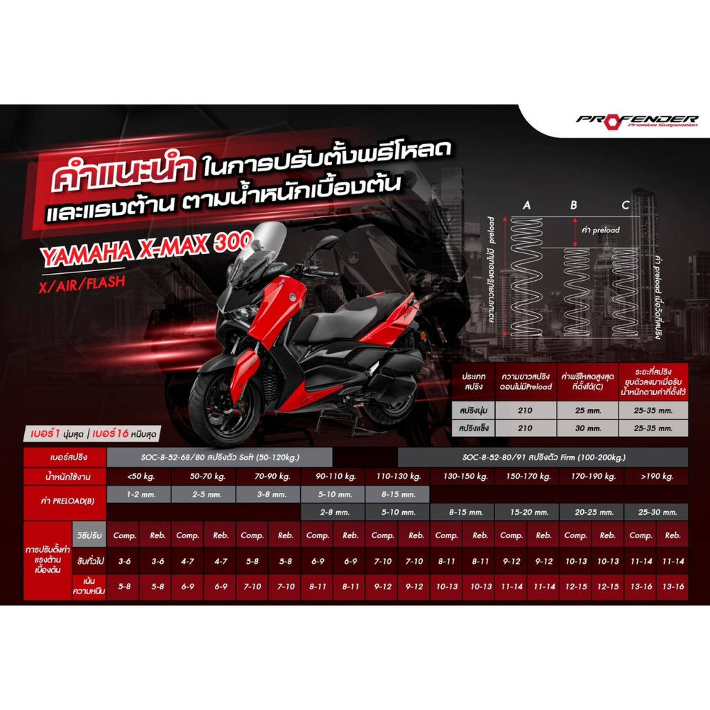 โช้ค PROFENDER AIR-Series XMAX 300 สีดำ