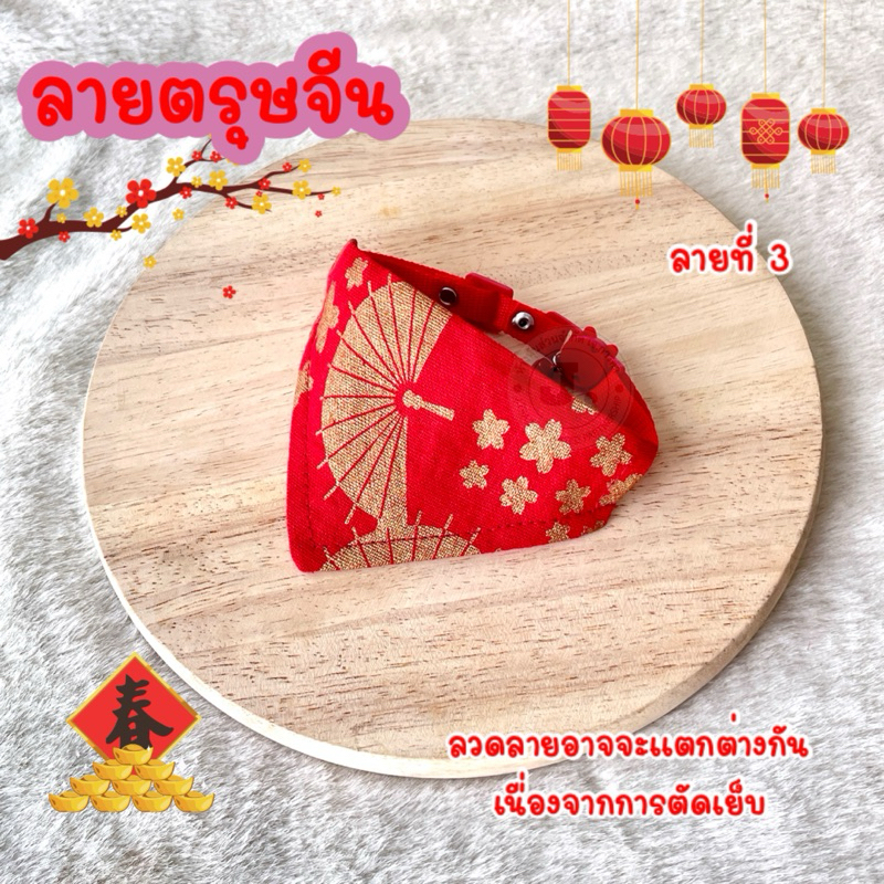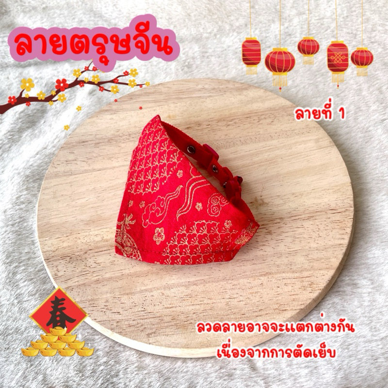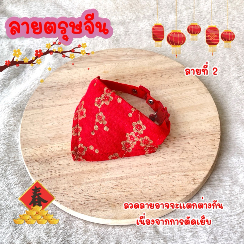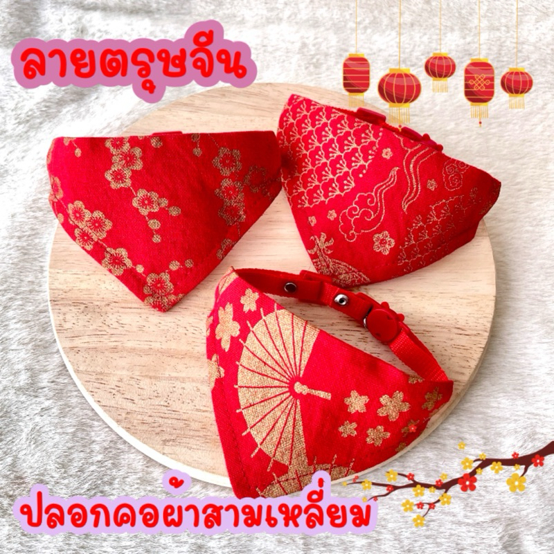 (P2)(สายนิ่ม ไม่บาดคอ)ลายตรุษจีน ปลอกคอสามเหลี่ยมตัวล็อกนิรภัย