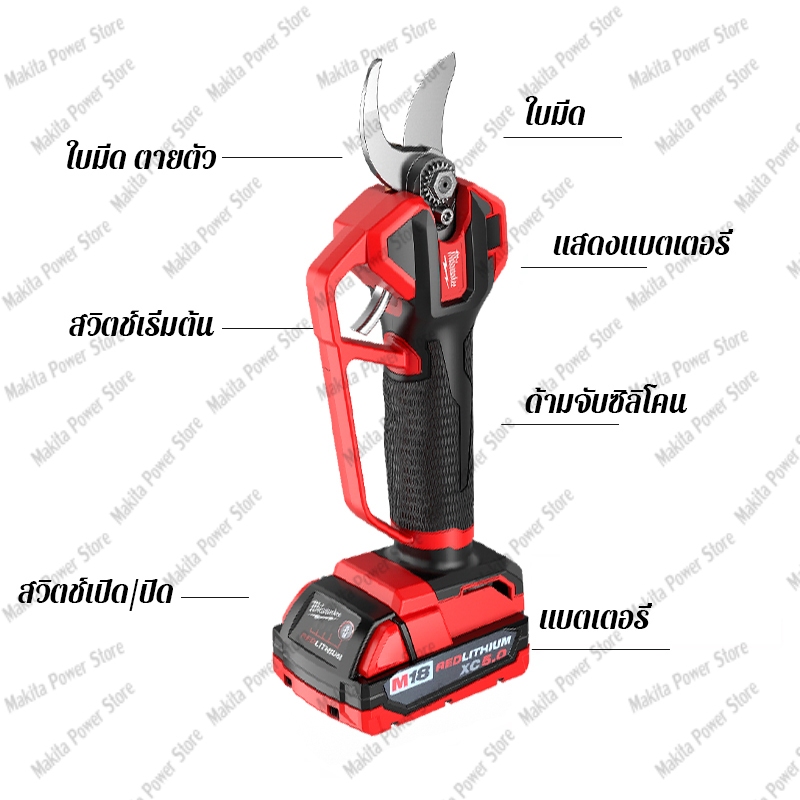 【ใหม่ล่าสุดบนชั้นวาง】Milwaukee M18 กรรไกรตัดกิ่งไม้ กรรไกไฟฟ้าไร้สาย 18V เคลือกตัดไฟฟ้าแบบพกพาแบบไร้สาย 45 มม.