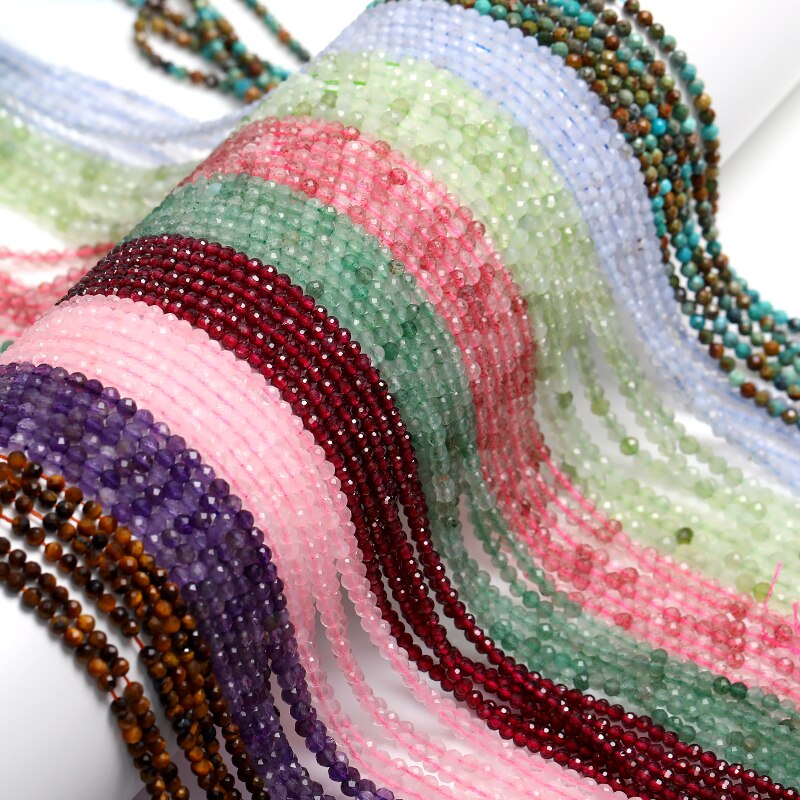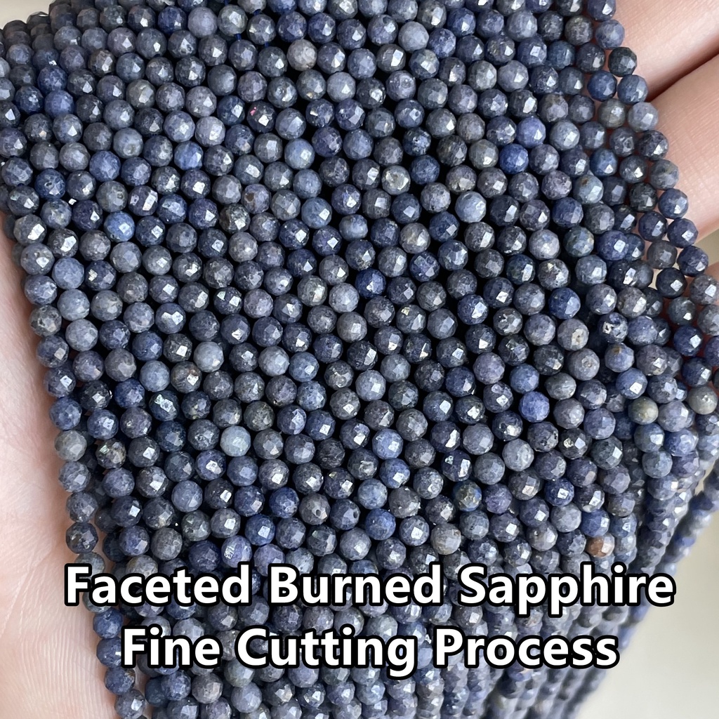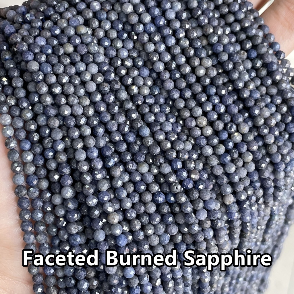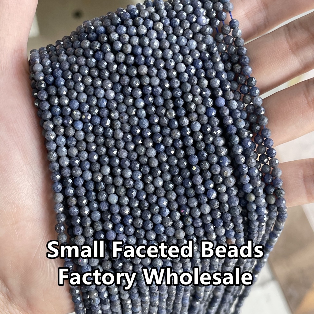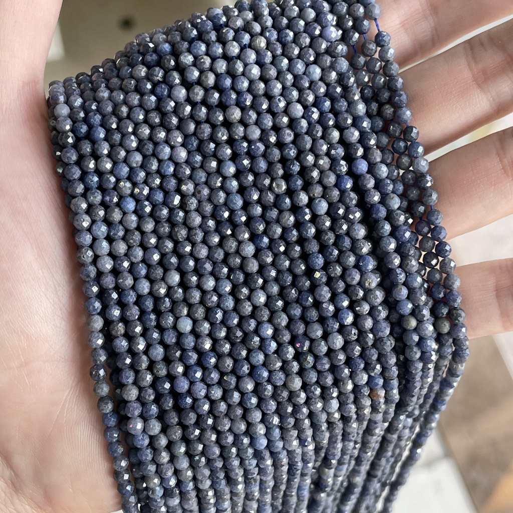 ลูกปัดหินไพลินธรรมชาติ 3 มม. สีฟ้า สําหรับทําเครื่องประดับ